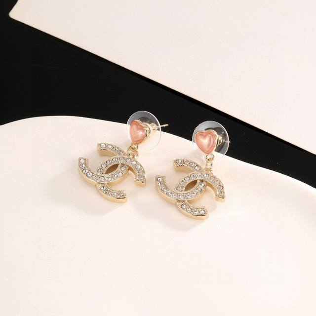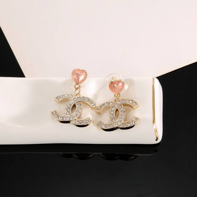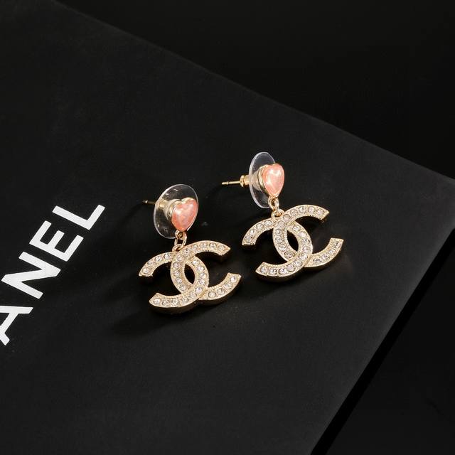 Chanel heart-shaped stud earrings, flattering the face shape. The gold metal trim gives them a mysterious, mature, and vintage feel. The double C metal logo in resin color blocking is classic and versatile! (Earrings available from