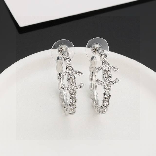 Chanel hoop earrings, a fashionable and stylish piece from Chanel's early spring collection. The medieval retro style is very flattering and flattering to the face! They're also very high-end! Exquisite handmade high-carbon diamond earrings, a popular style among online influencers.