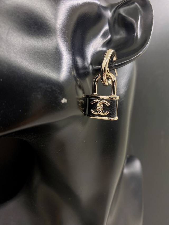 Chanel latest black leather small lock ear hook consistent with the Z batch brass material