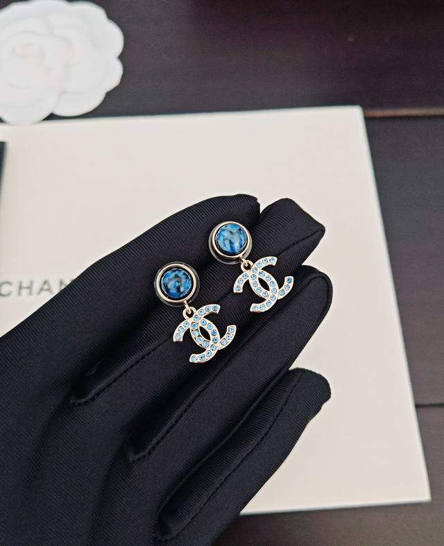 / Chanel latest light gold blue diamond Cc earrings consistent with Z batch brass