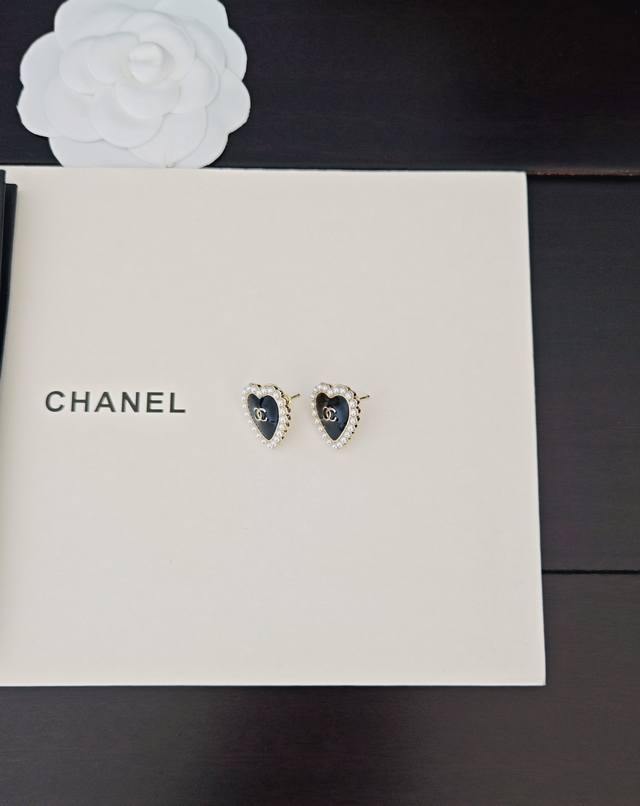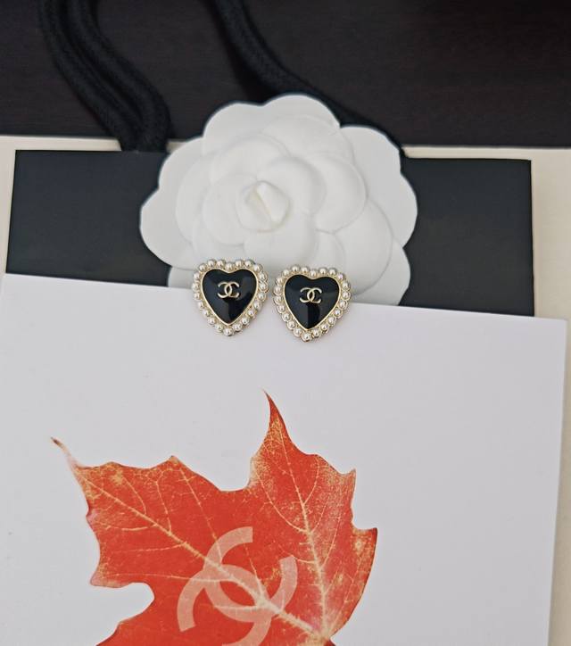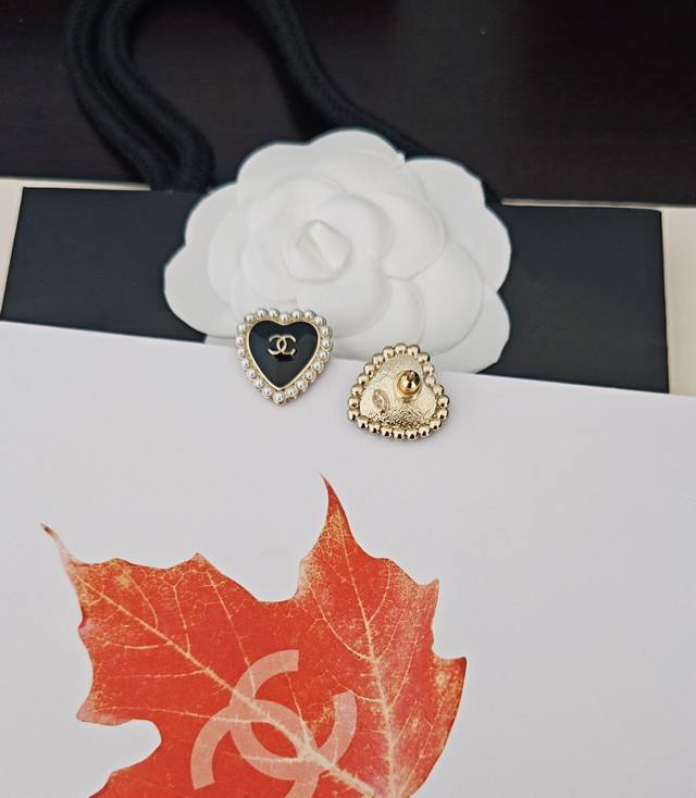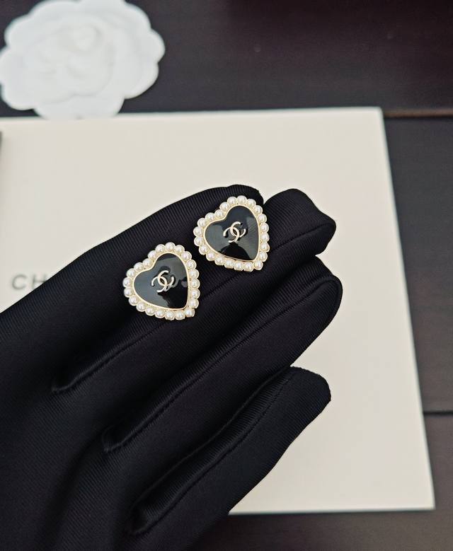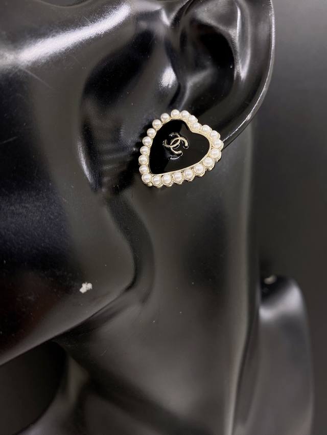 / Chanel latest pearl black heart earrings consistent with the Z batch brass mater