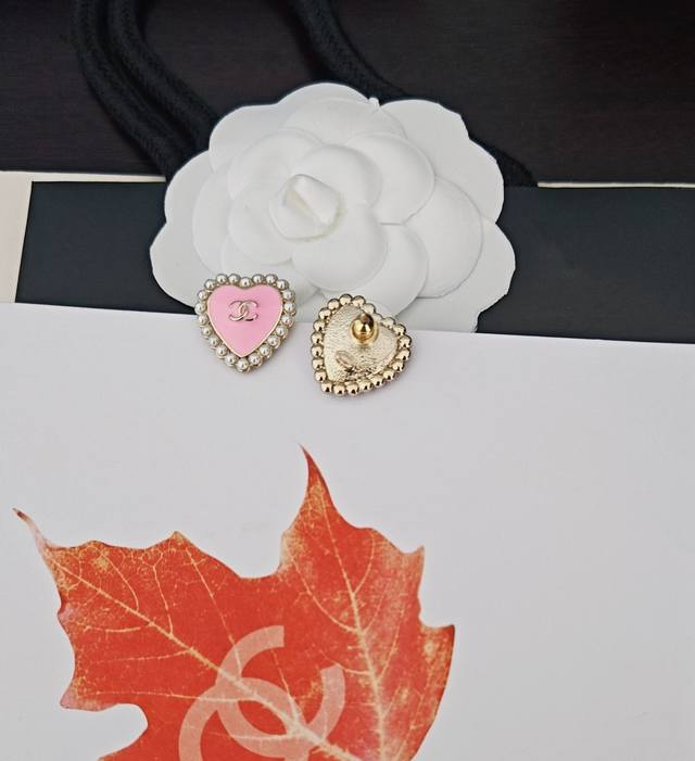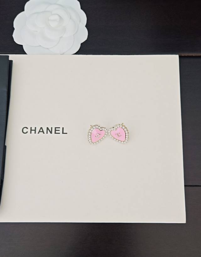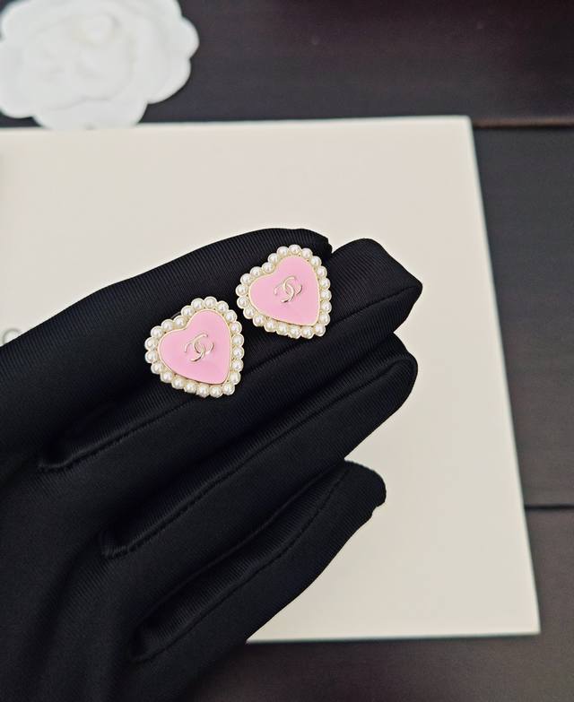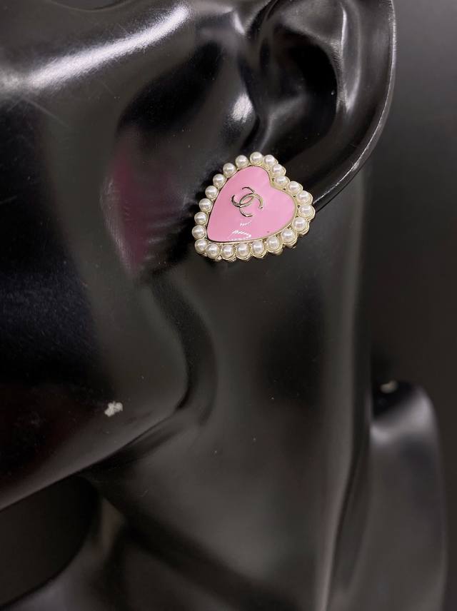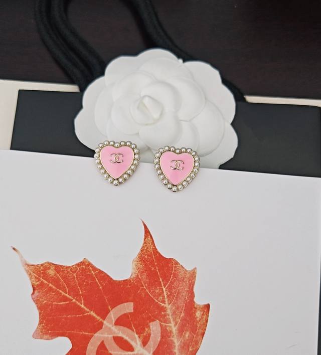 / Chanel latest pearl pink heart earrings consistent with the Z batch brass materi