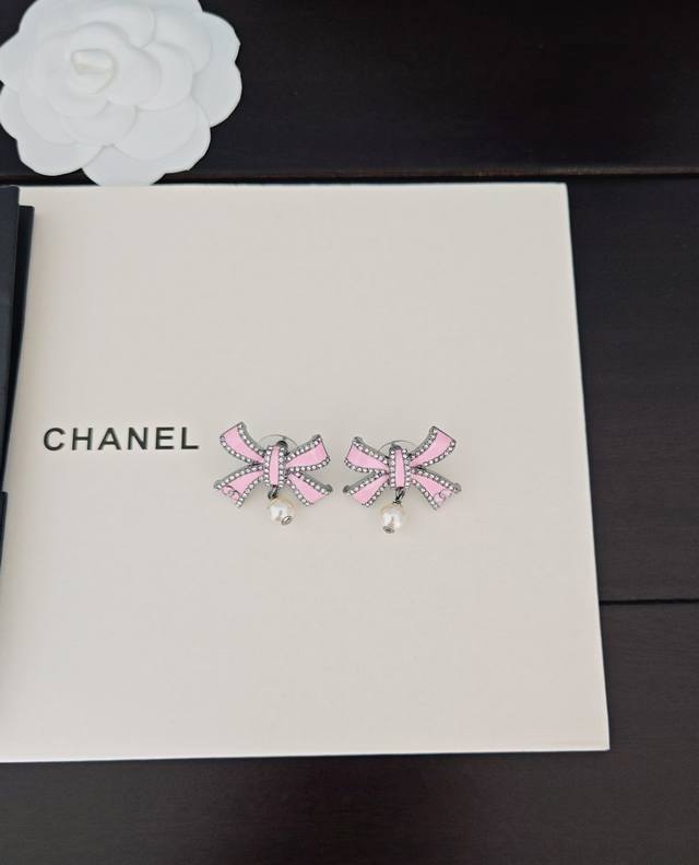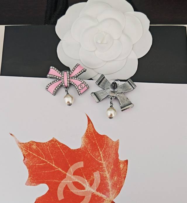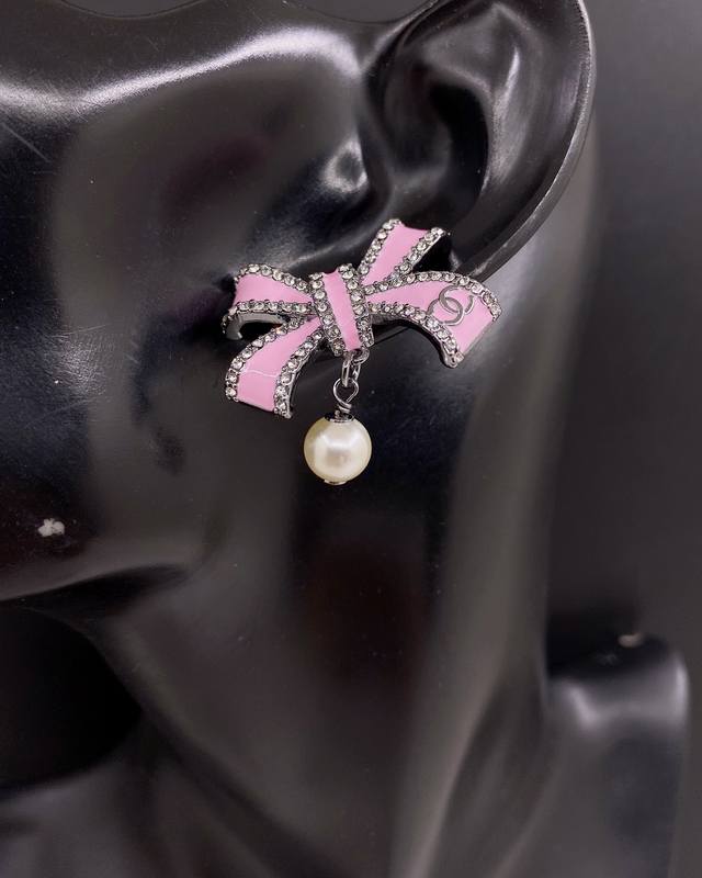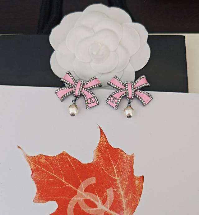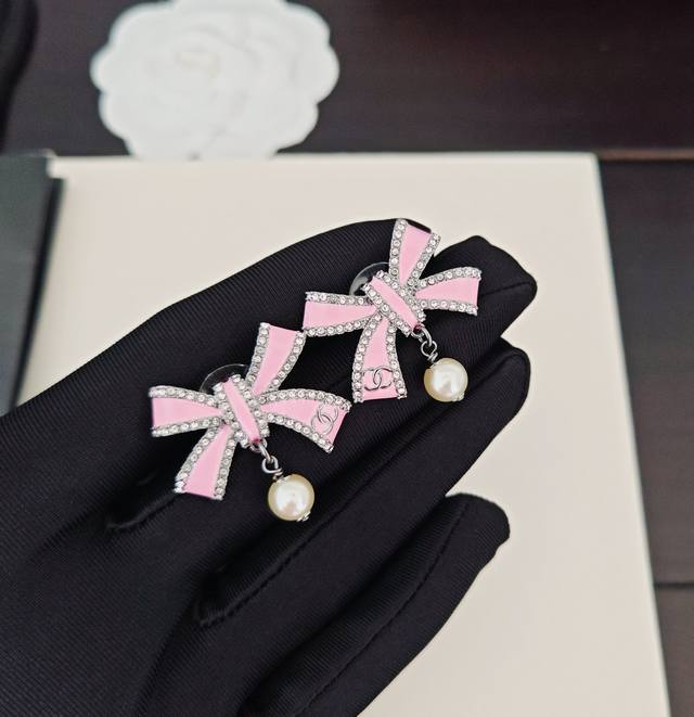 / Chanel latest pink bow pearl earrings consistent with the Z batch brass material