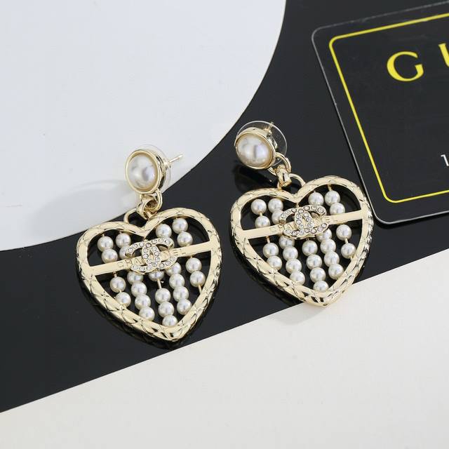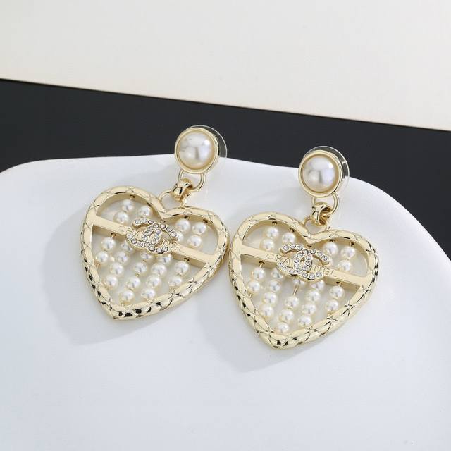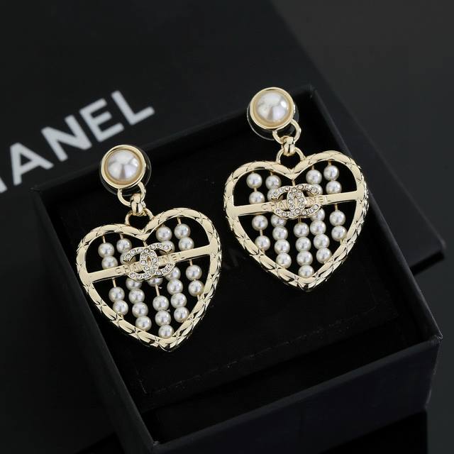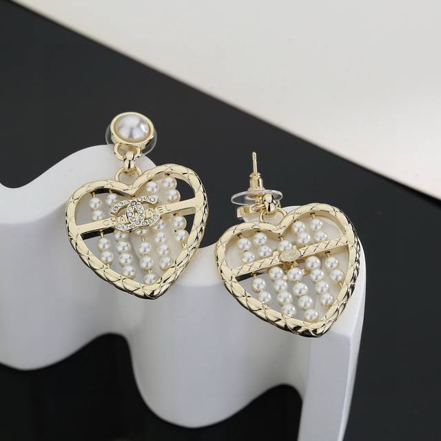 Chanel light gold heart-shaped earrings are a trendy early spring style. Whether you have a round or long face, these earrings offer unexpected surprises when paired with other items. They're a great way to flatter your face shape. The designs from this high-end brand are always incredible, providing unexpected inspiration. (Earrings