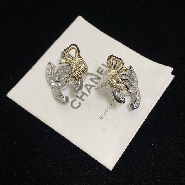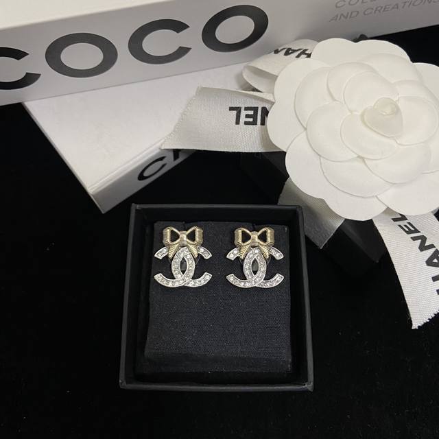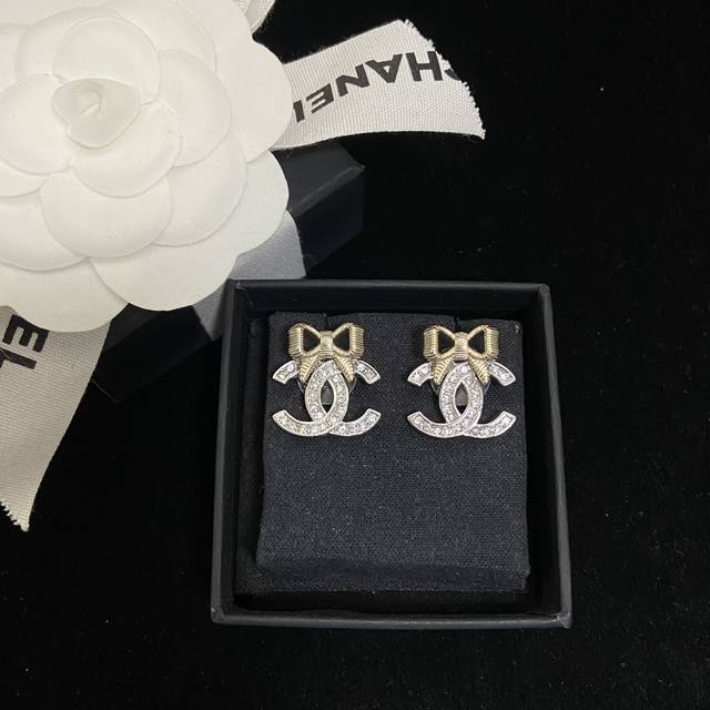 / Chanel New 24K Bow Earrings Hollow out butterfly design with carved lines Sweet