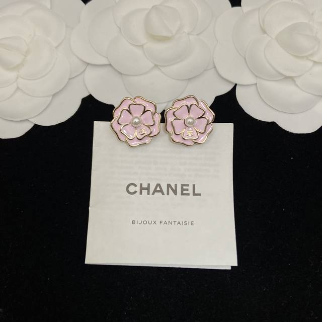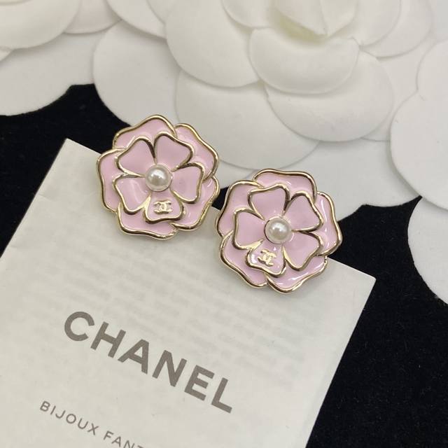 / Chanel New 25B Pink Camellia Earrings Full of girlish charm, classic camellia de