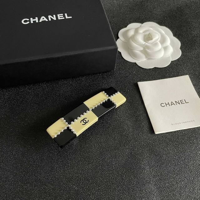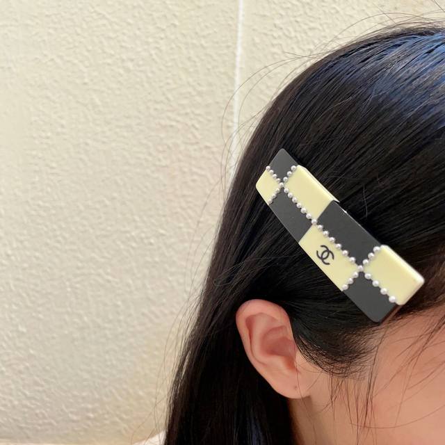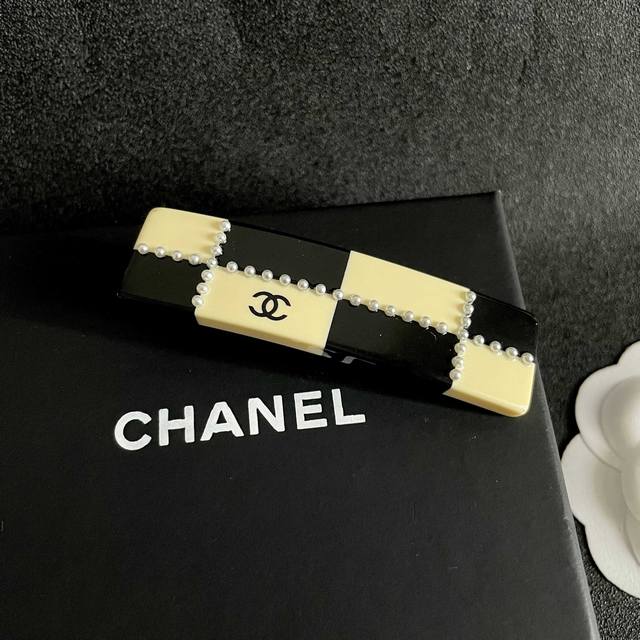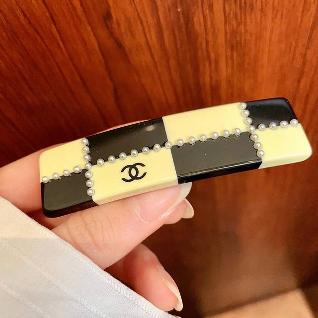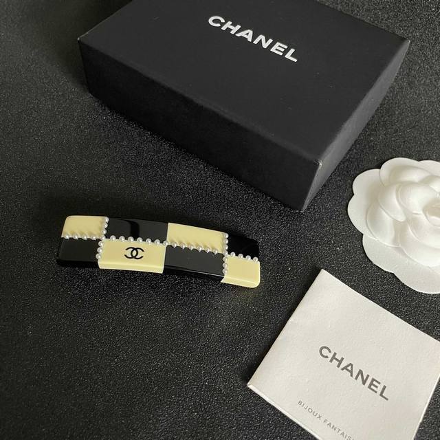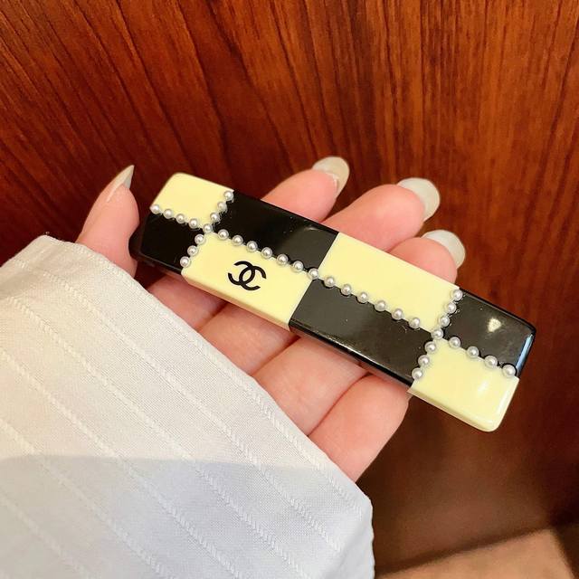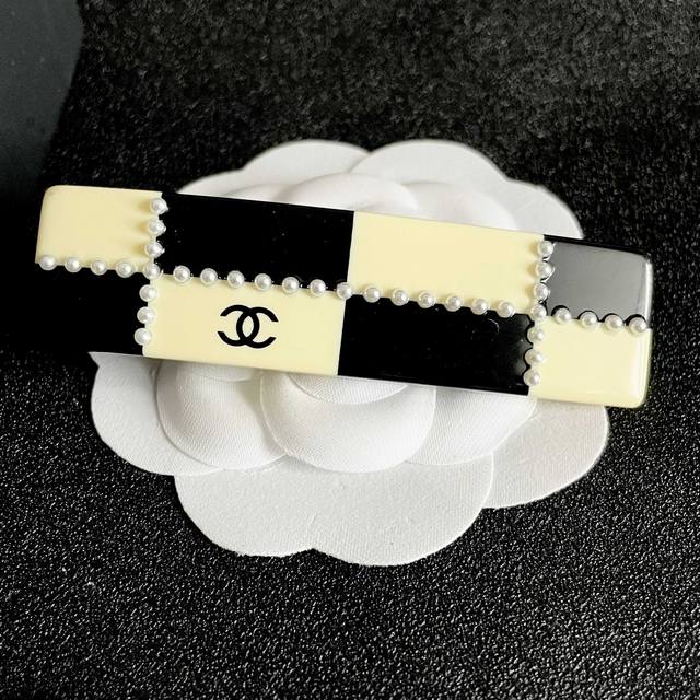 / Chanel Pearl Color-Blocked Double C Hair Clip Ddd