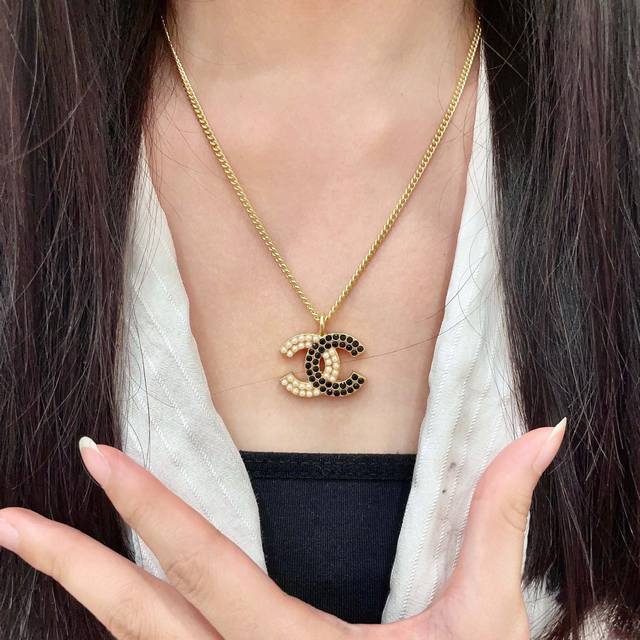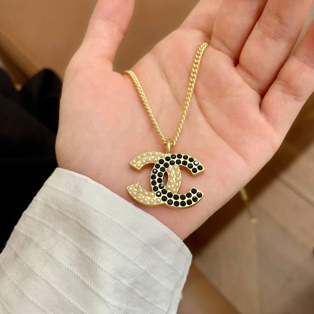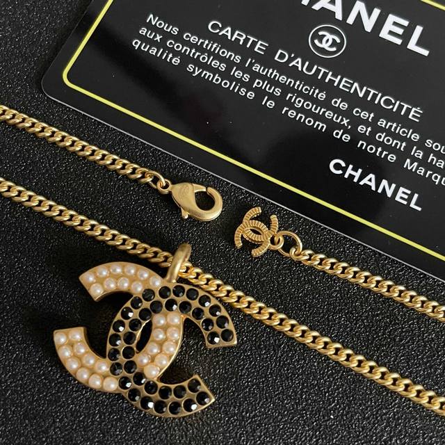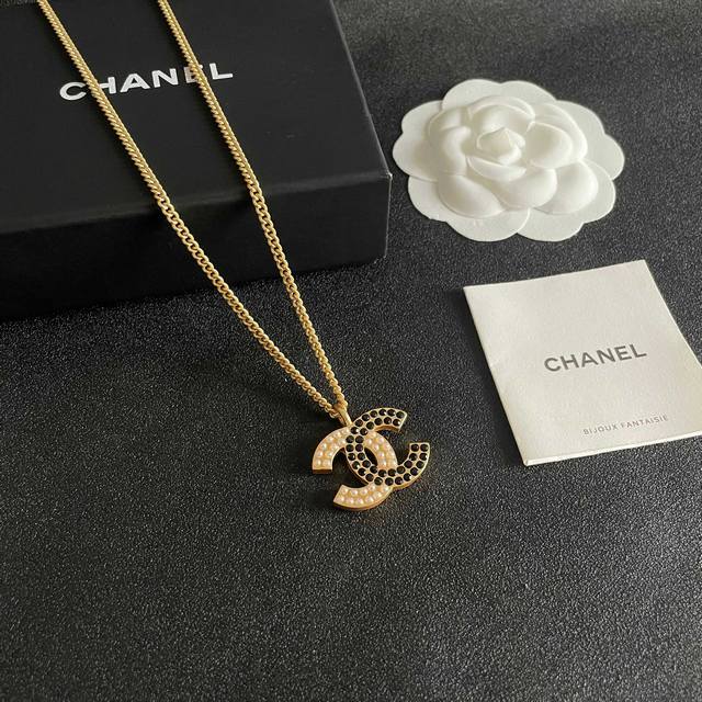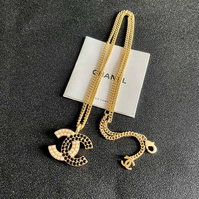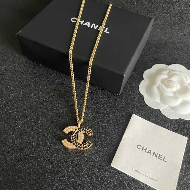 / Chanel Pearl Double C Color Block Necklace Ddd