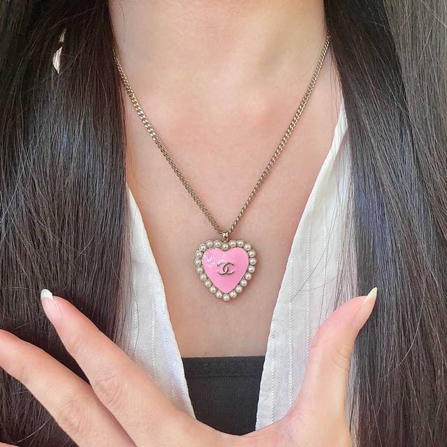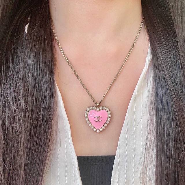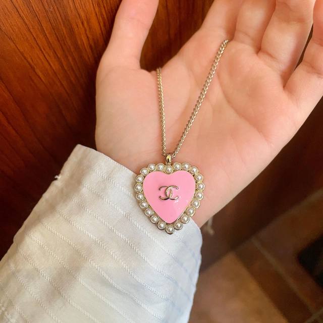 / Chanel Pearl Heart Double C Necklace Ddd