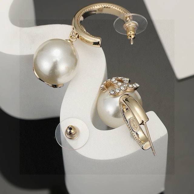 Chanel Pearl Stud Earrings - A fashionable and stylish piece from Chanel's early spring collection. The medieval retro style is very flattering and flattering to the face! They're also very high-end! Exquisite handmade high-carbon diamond earrings, a popular style among online influencers.
