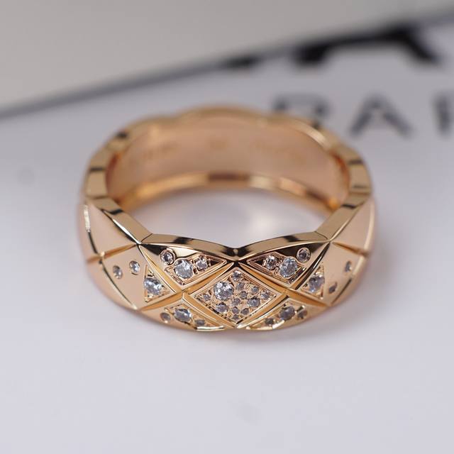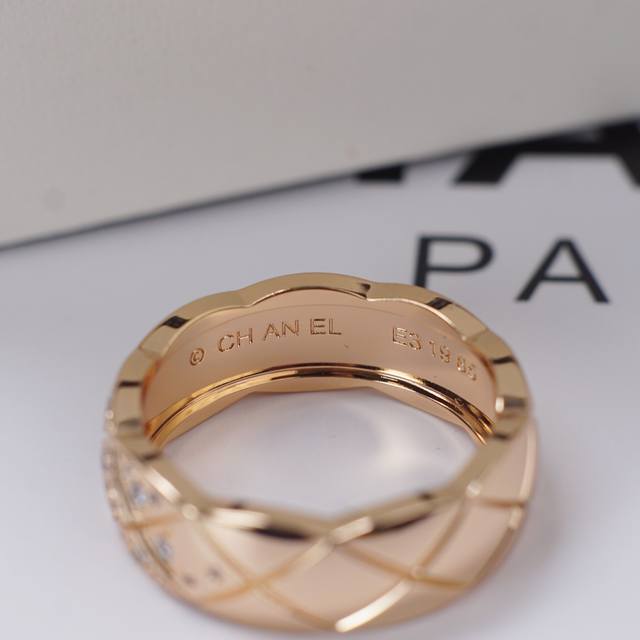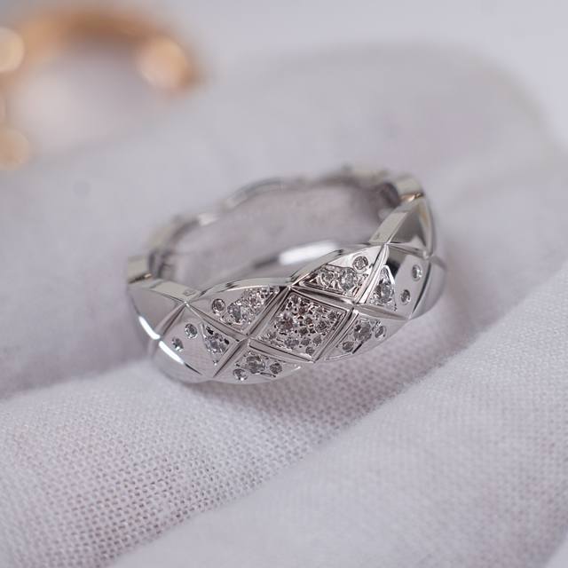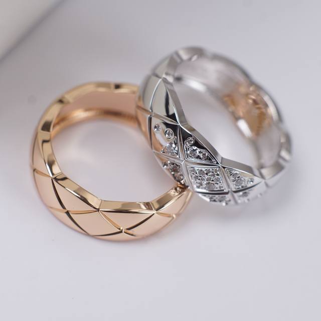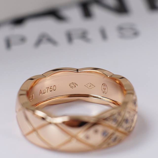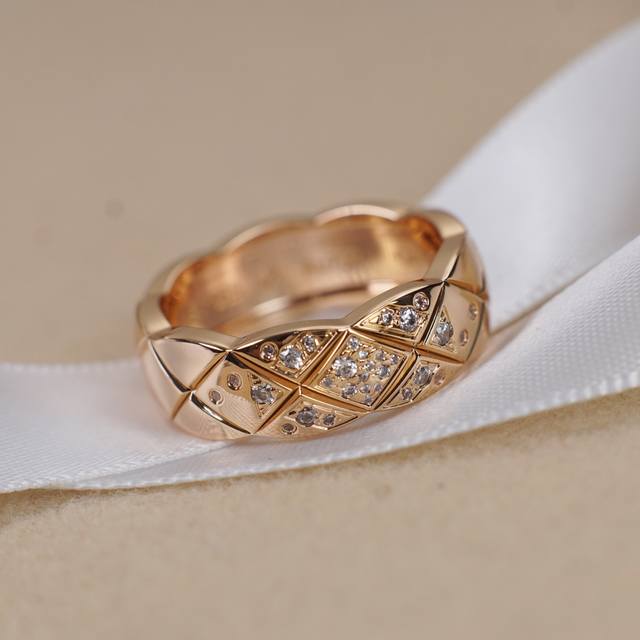 Chanel quilted diamond ring from the Coco Crush series, US sizes 5-6-7-8. Made of rose gold, white gold, or