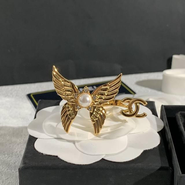 Chanel Ruban series bow ring, inspired by ribbons, is made of 18K gold inlaid with pearls and diamonds. It has smooth lines and elegant shape, showing unique charm. 5264