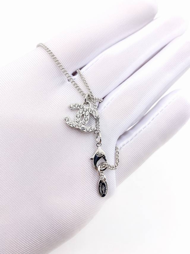 Chanel single-row diamond double C necklace, high-end quality, same material as boutiques, genuine brass, ion-plated, exclusive real photos, exquisite and delicate workmanship, heavy-duty version, a super fairy-like and beautiful piece, super meticulous workmanship with no flaws, comparable to the original, buying it is a steal!