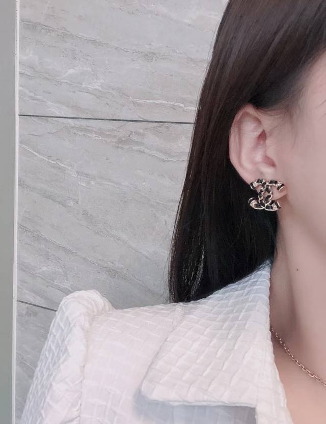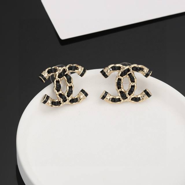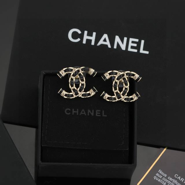 Chanel small black leather stud earrings, high-end quality, same material as boutiques, genuine brass, ion-plated, exclusive real photos, exquisite and delicate workmanship, heavy-duty version, a super fairy-like and beautiful piece, super meticulous workmanship with no flaws, comparable to the original, buying it is a bargain. Earrings