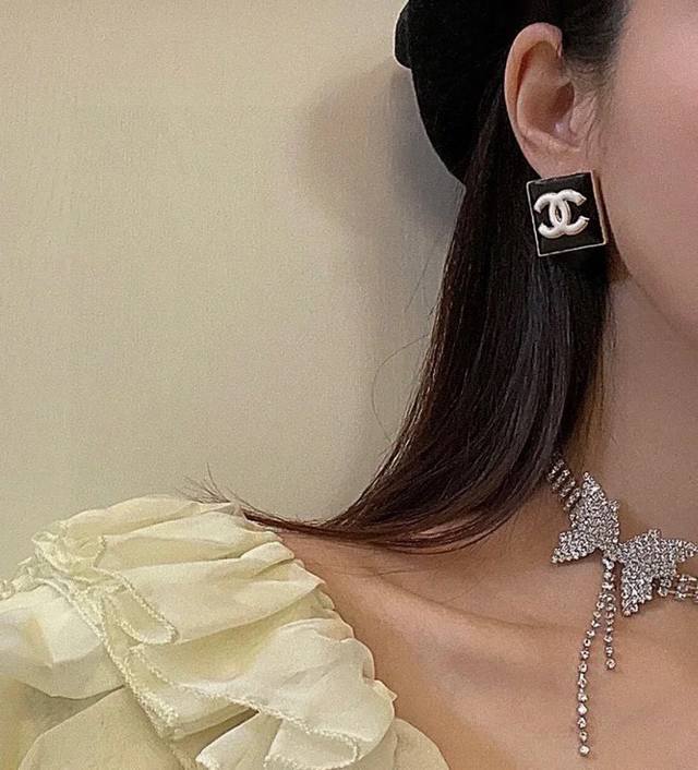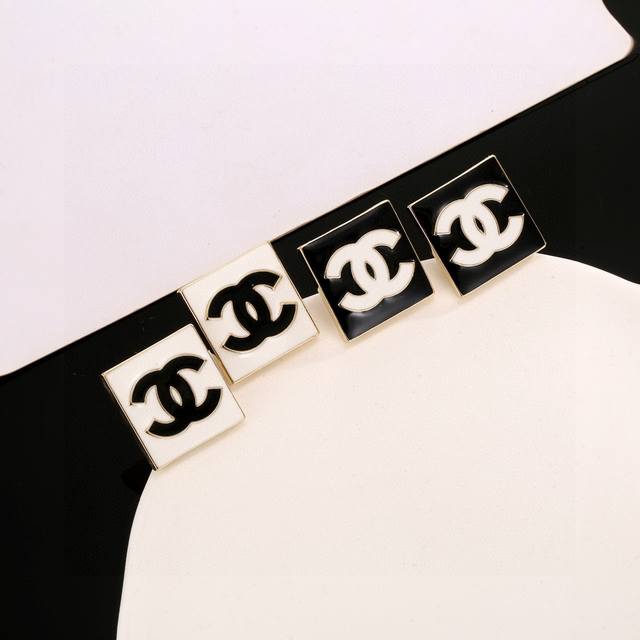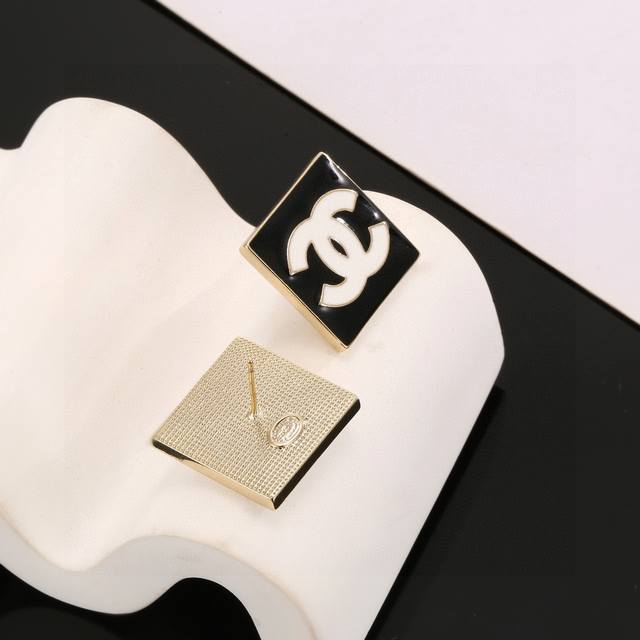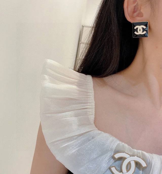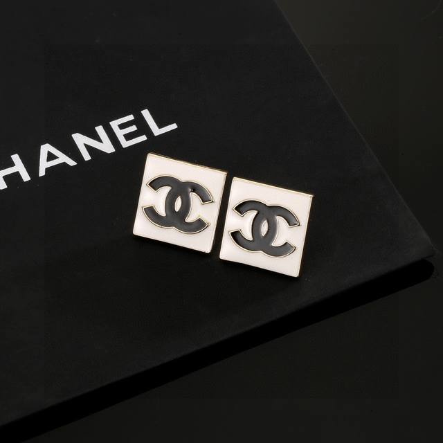 Chanel Square Ear Studs, Flattering For Any Face Shape. The Golden Metal Frame Exudes A Mysterious, Mature, And Vintage Vibe. The Double C Metal Logo In Resin With A Contrasting Color Is Classic And Versatile! Ear Studs