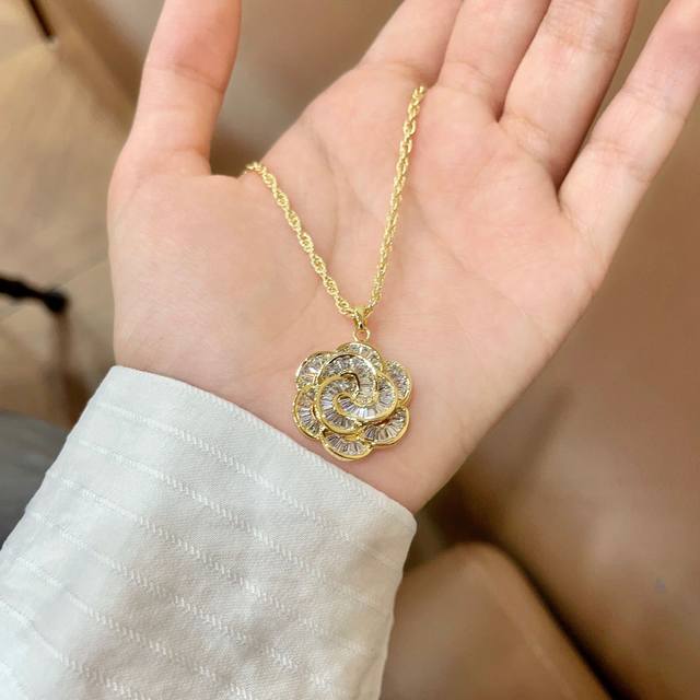 Chanel latest light gold small square necklace consistent with the Z batch brass