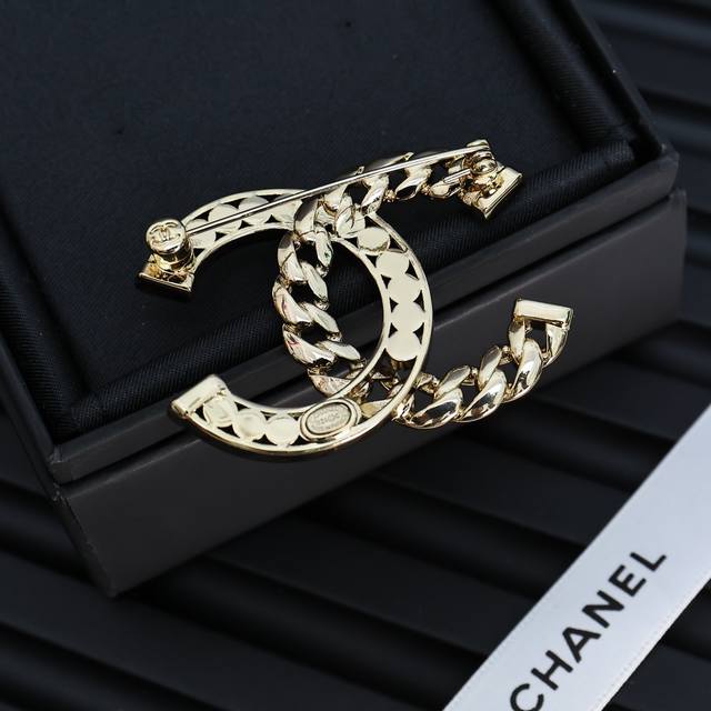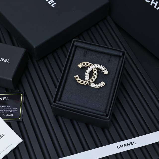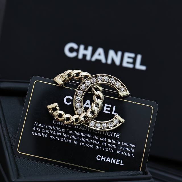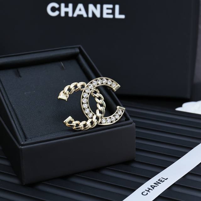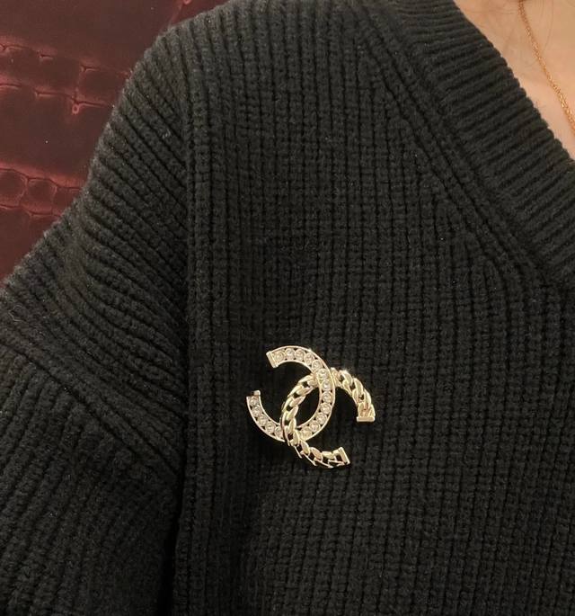/ Chanel24p chain half diamond brooch chain diamond double C brooch love it