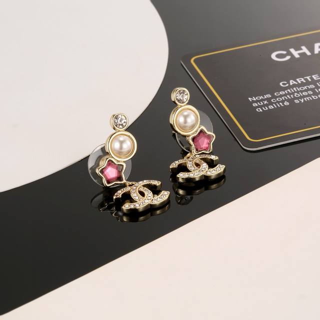 Chanel's colorful star earrings are perfect for flattering your face. Surrounded by a gold metal rim, they create a mysterious, sophisticated, and retro feel. The double C metal logo is classic and versatile! Earrings
