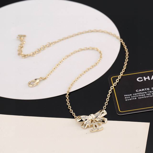 Chanel's latest bow necklace in stainless steel, colorfast and incredibly unique. A versatile piece that's truly amazing. The overall details are delightfully surprising, with a strong sense of design. It not only exudes personal confidence and taste, but its elegant and fashionable style also highlights French sophistication. The meticulous details make it even more attractive to wear.
