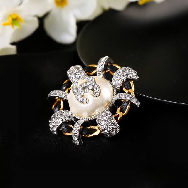 / Chanel's latest Fall/Winter pearl brooch, classic and timeless double C design,