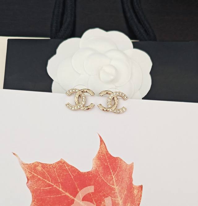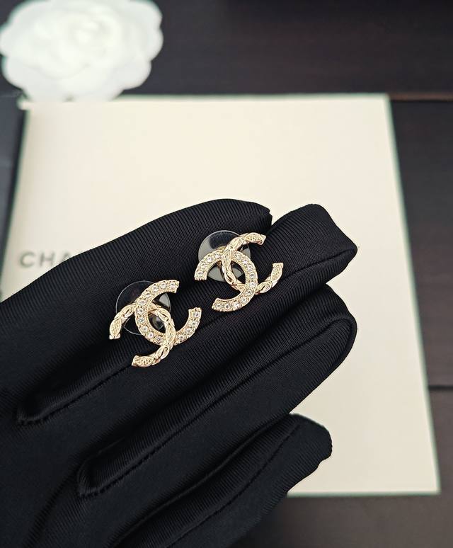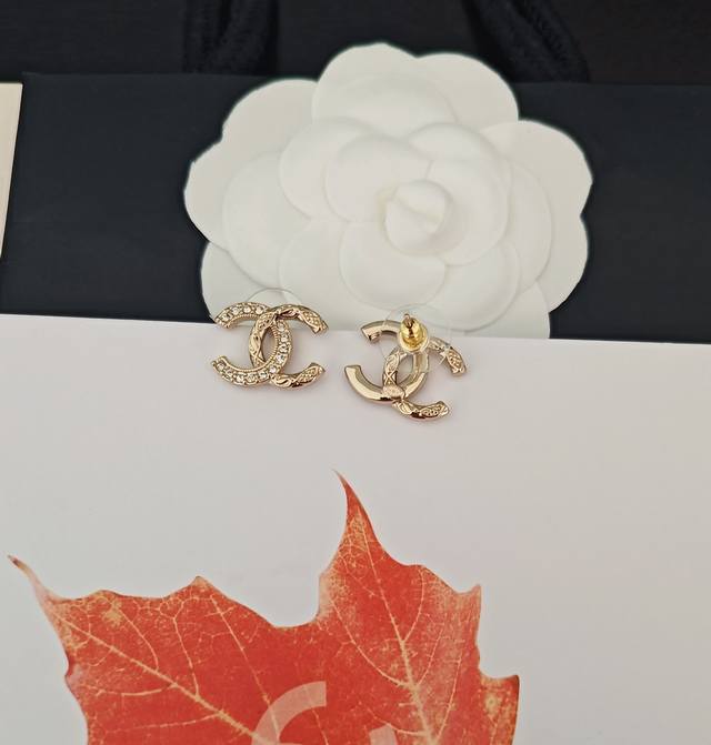 / Chanel's latest light gold round diamond Cc earrings, identical to batch Z, made