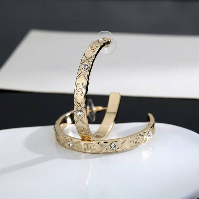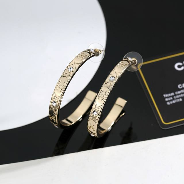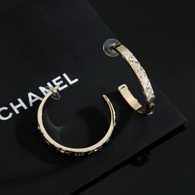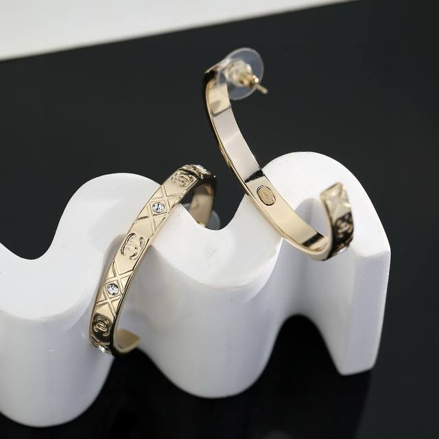 Chanel's new earrings, more flattering to the face shape. The gold metal trim gives them a mysterious, mature, and vintage feel. The double C metal logo in resin color blocking is classic and versatile! Earrings