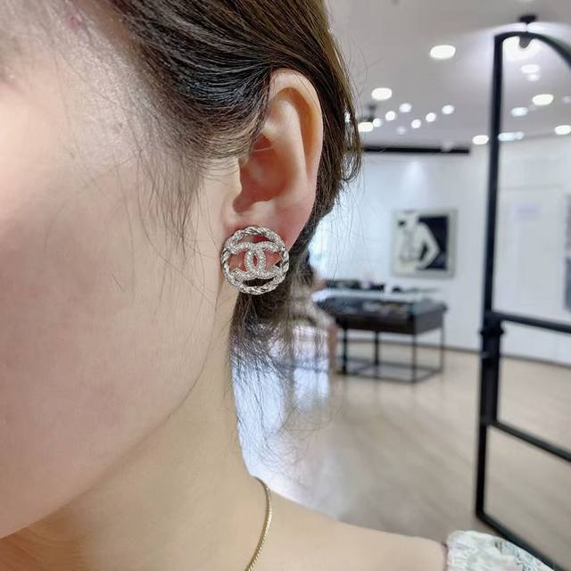 Chane's hollow hoop crystal diamond letter earrings are a hot seller! The Chan 25 double C hollow letter earrings feature a classic round shape and the brand's iconic double C. The large, hollow letter hoop is incredibly flattering, giving it a vintage feel and a powerful presence!