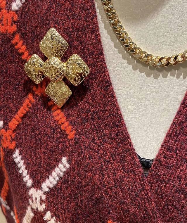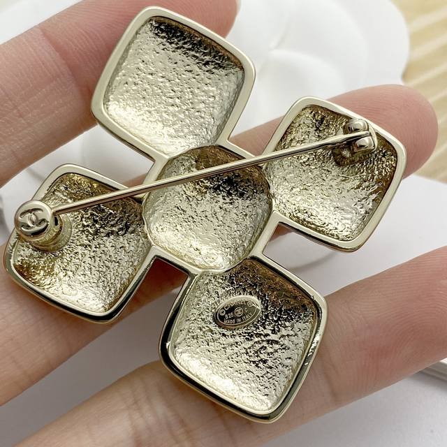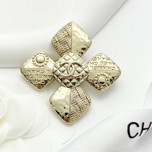 The brooch features a large diamond shape composed of four small diamonds, incorporating Chanel's signature elements such as tweed, lava, letters, diamond patterns, and sunflowers. The details are impeccable