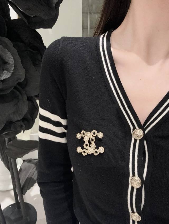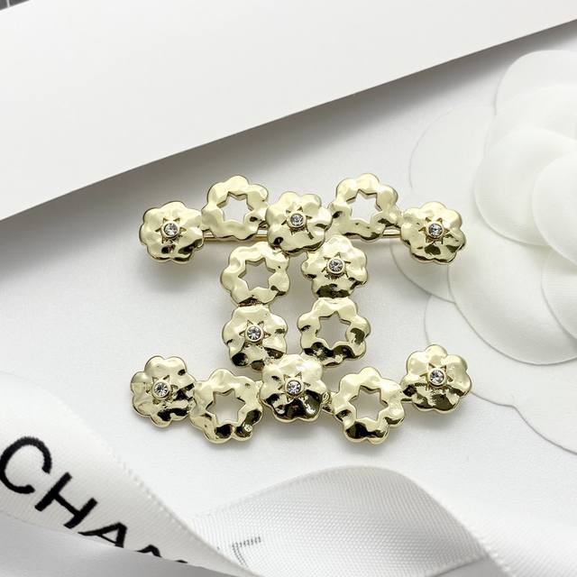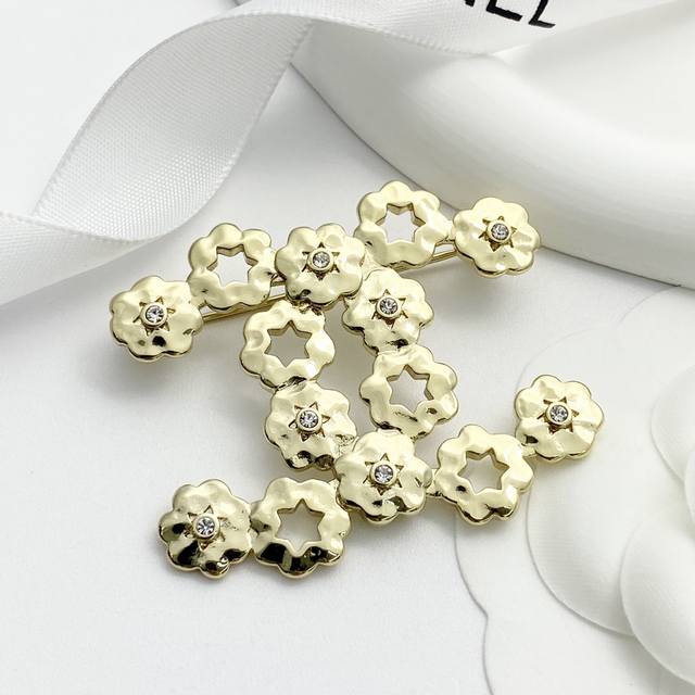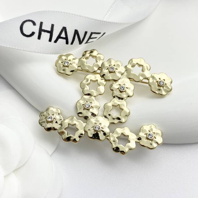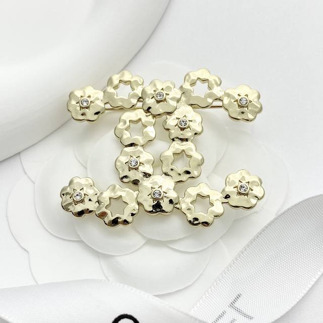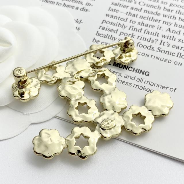 Chanel 25 Hollow Star Rhinestone Camellia Double C Brooch