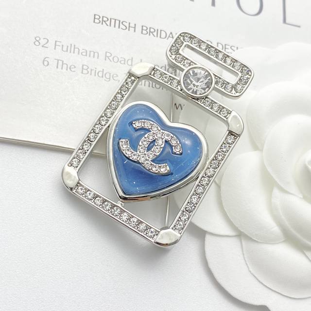 Chan 25p Blue Heart Perfume Bottle Brooch