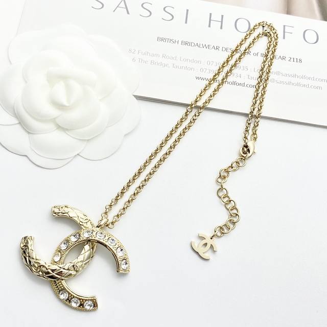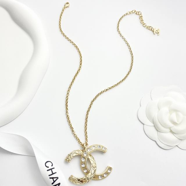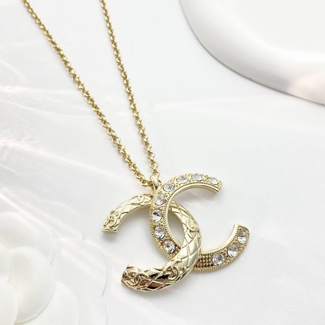 Code N1006 0864825 DDD Chanel Necklace Hot Selling Item New Arrival DDD Chanel 24 Light Gold Quilted Rhinestone Double C Necklace DDD The pendant features a double C design, with one half C-shaped and inlaid with rhinestones, and the other half featuring an embossed double C quilted pattern DDD Combining multiple classic Chanel elements, it exudes elegance and luxury~ The wearing effect is simple, sophisticated, and timeless DDD