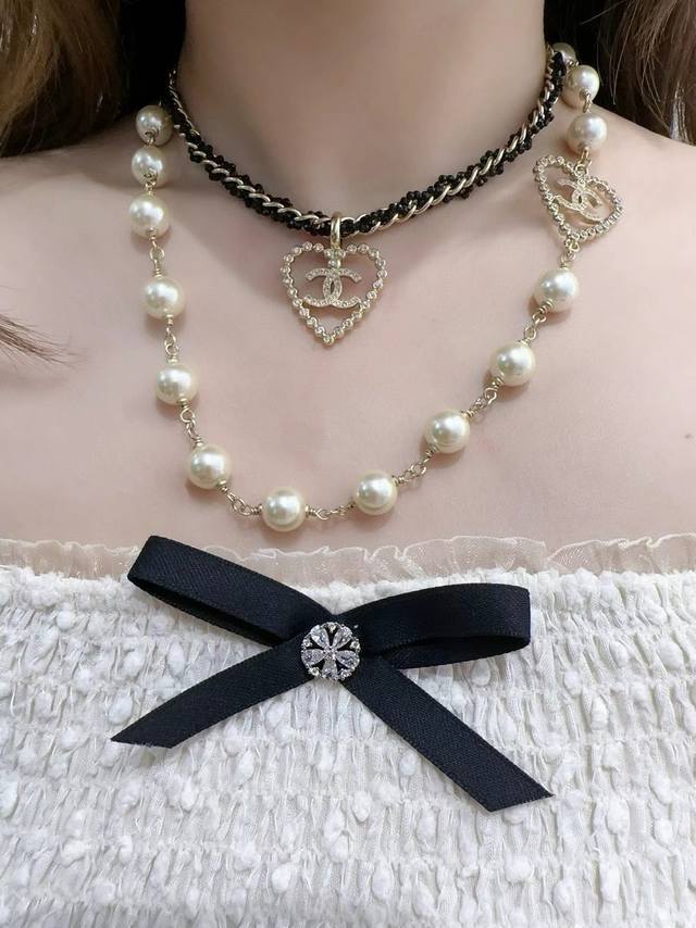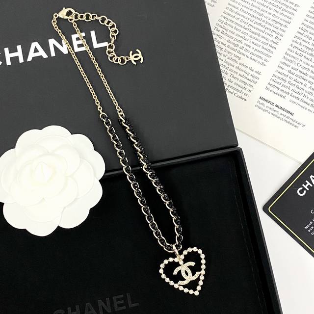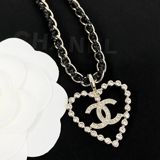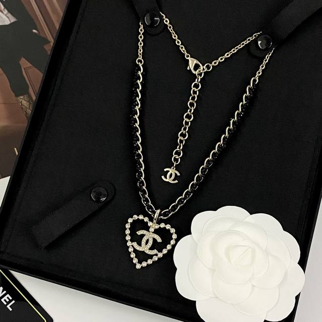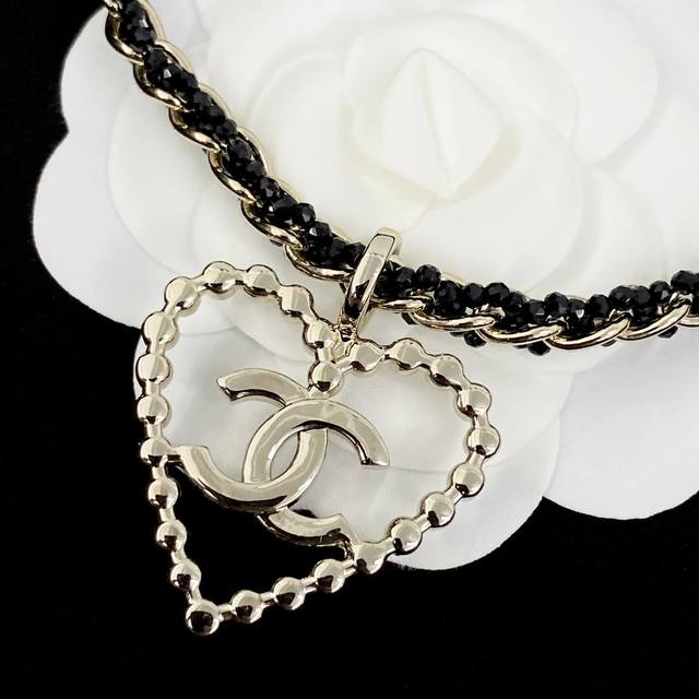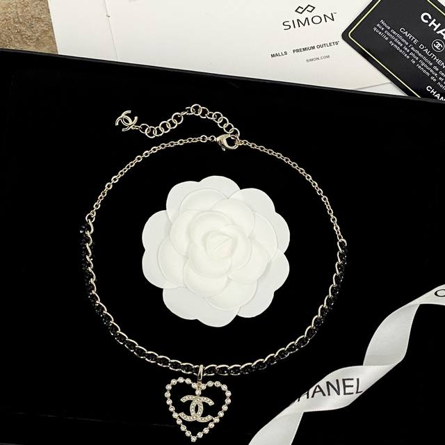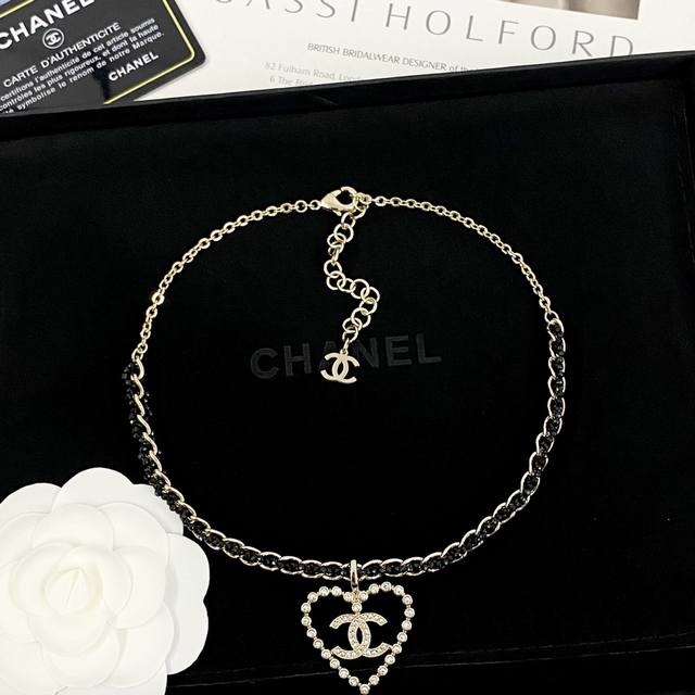 Chan 25 gold diamond double C hollow heart pendant necklace Choker