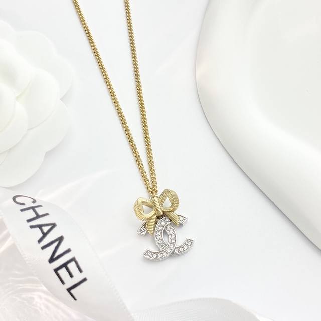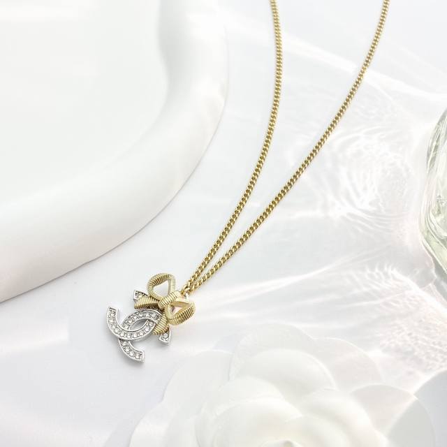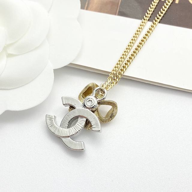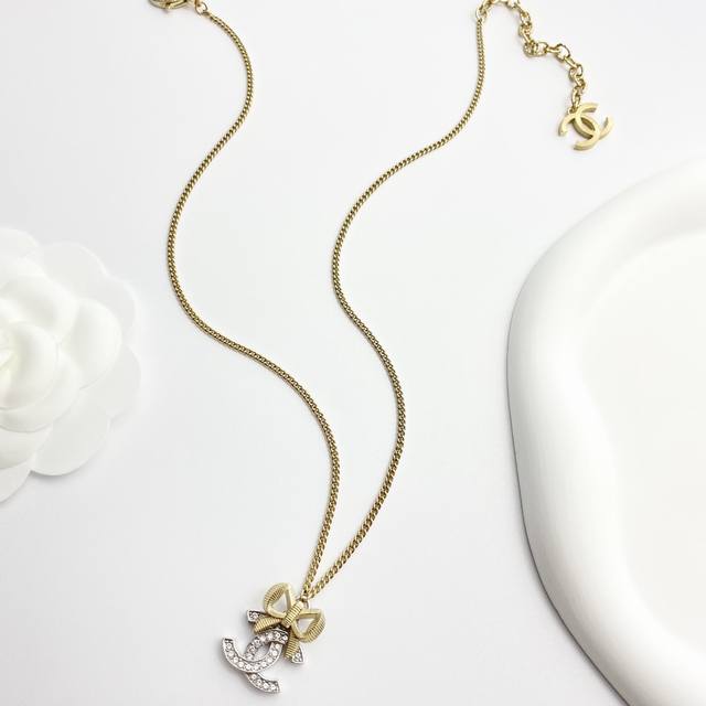 Chanel 24 Gold and Silver Two-Tone 3D Bow Necklace