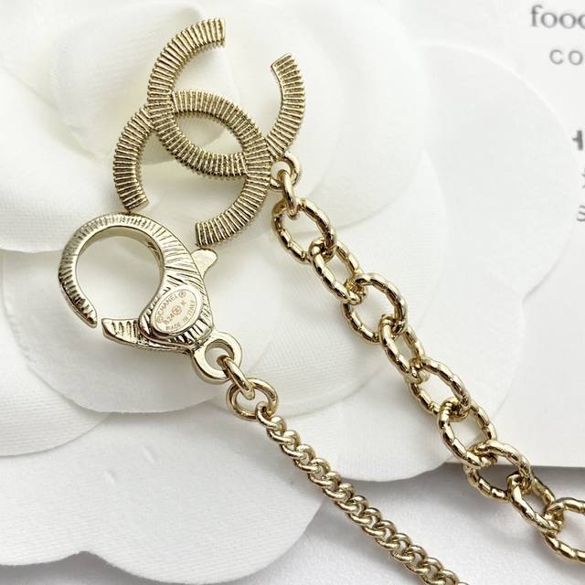 The champagne gold bow's luxurious feel and the silver sparkling double C's casualness perfectly interpret a sweet and edgy style