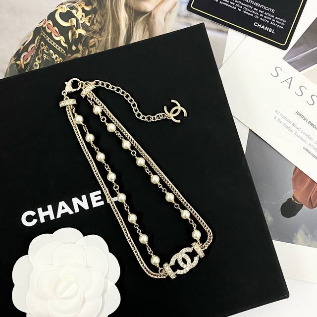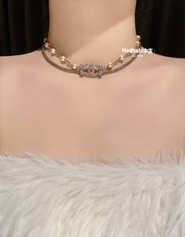 The chain features a three-dimensional Chopin chain pearl necklace with a double-layer design, creating a layered effect