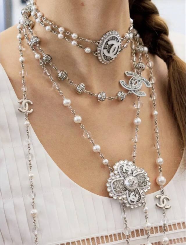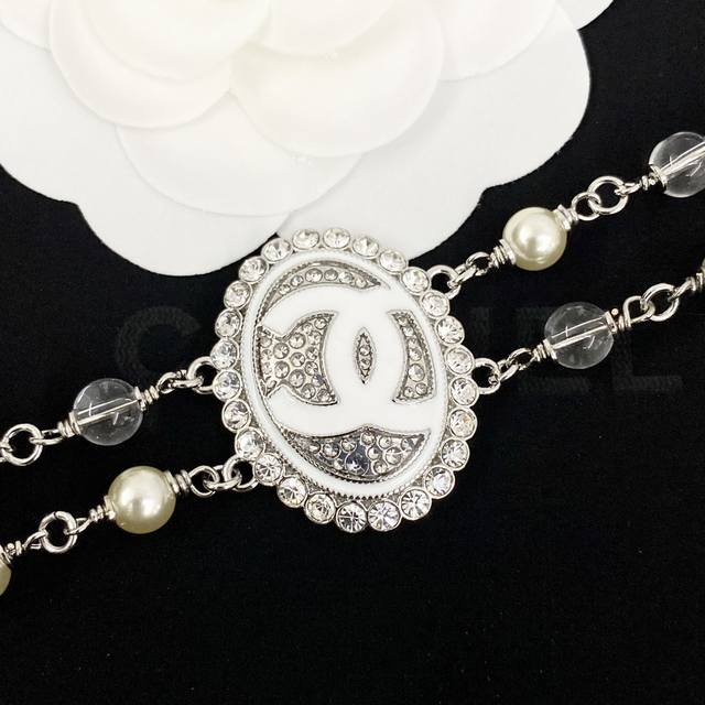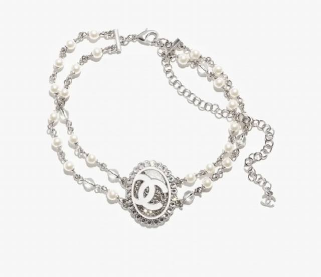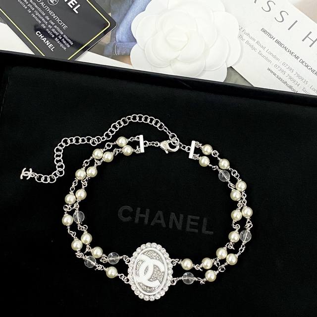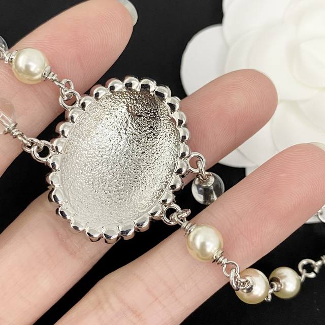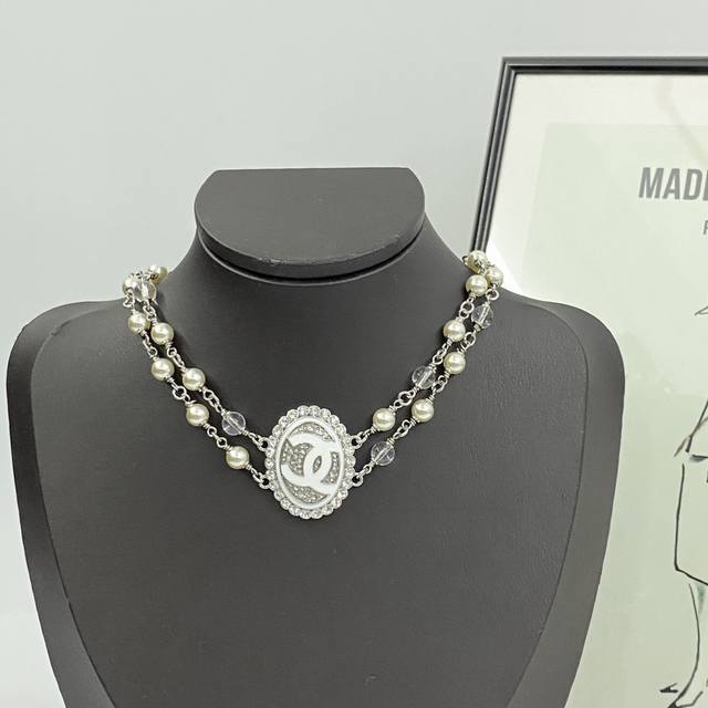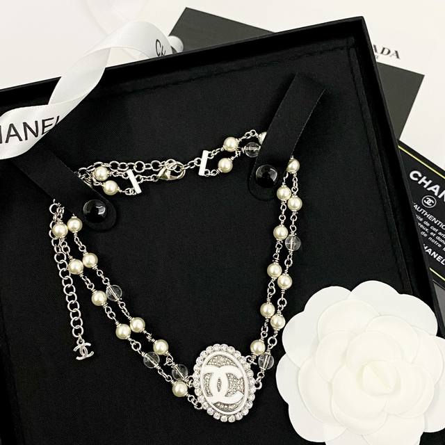 Code N981 0384820 DDD Chanel Necklace Hot Selling Item New Arrival DDD Chanel 24 Full Diamond Oval Double-Layer Pearl Choker DDD Transparent Pearl Necklace with Double-Layer Design, Creates a Layering Effect DDD A silver-white sparkly oval pendant hangs in the center, with a white double-C design in the middle DDD Super Bling-bling texture! So sweet and cool! DDD Very elegant heiress style, perfect for casual wear or paired with off-the-shoulder dresses for a gentle and sophisticated look DDD