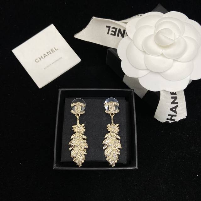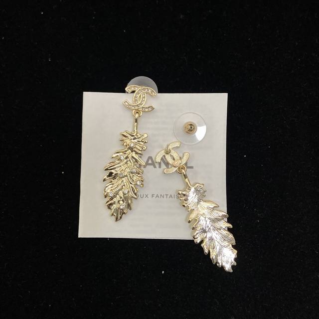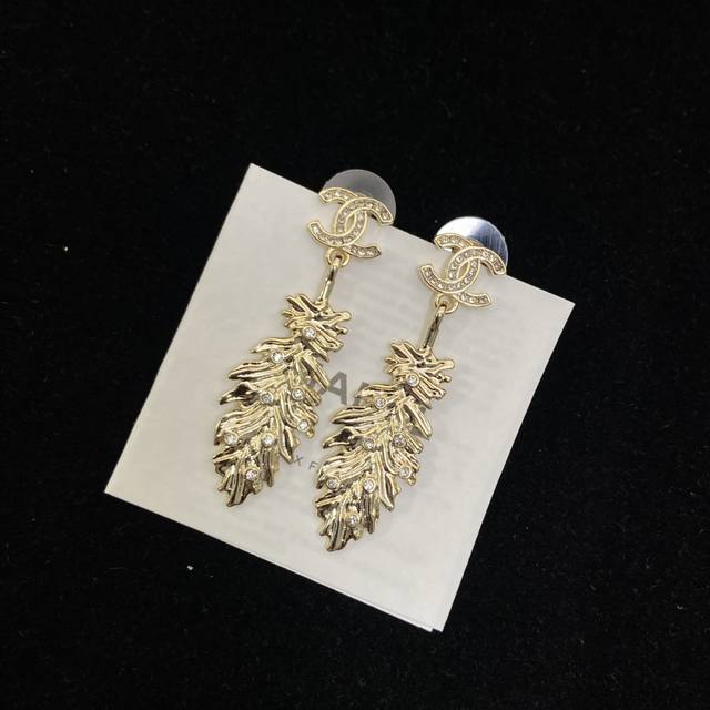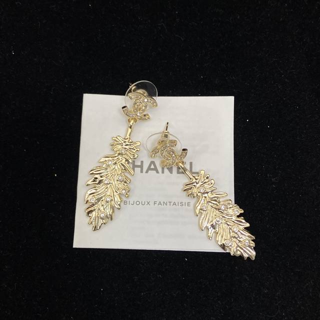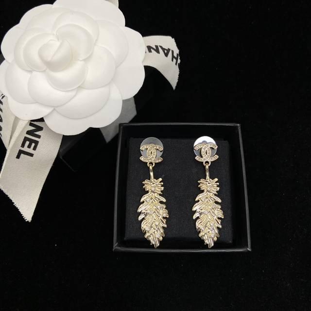 / Double C full diamond feather stud earrings So elegant Chanel high-jewelry feel