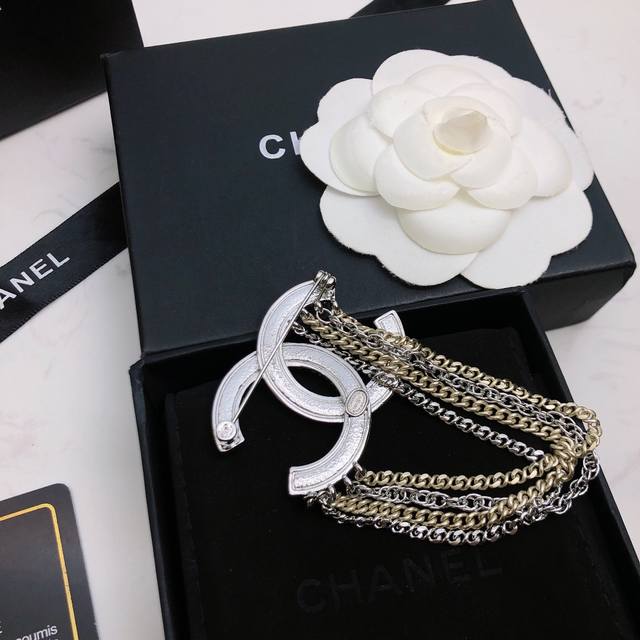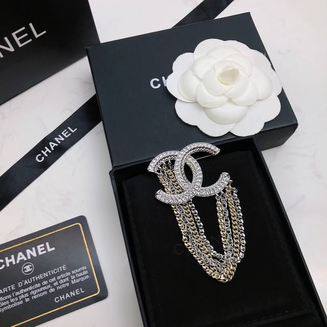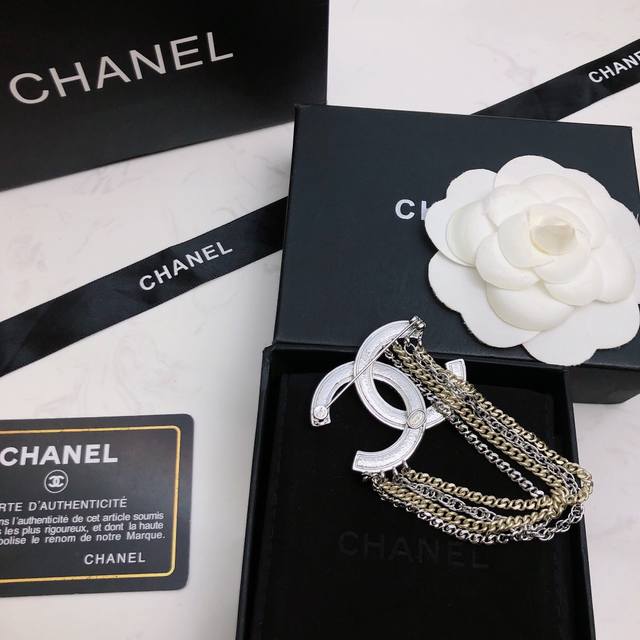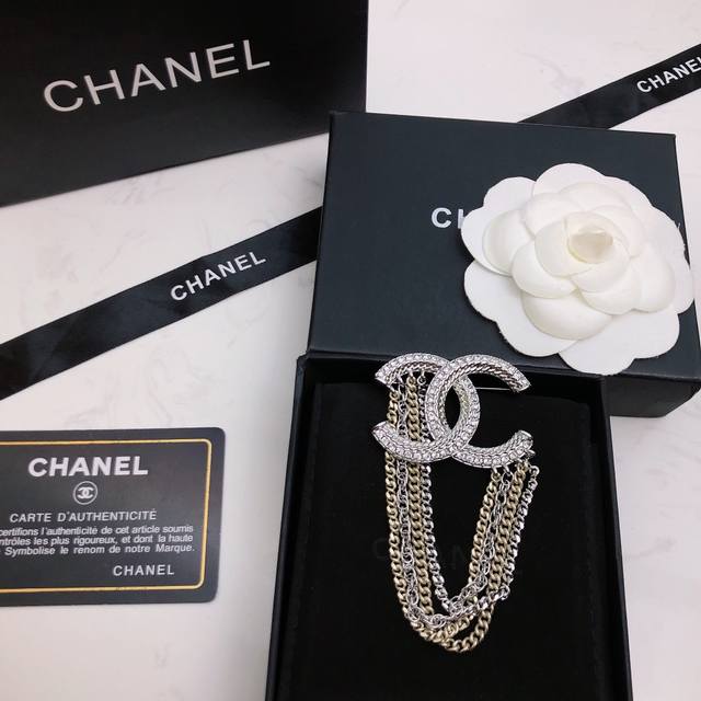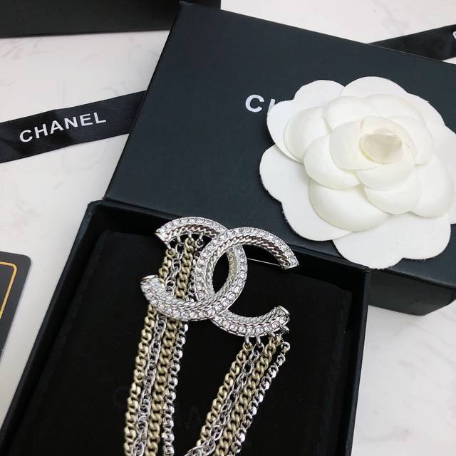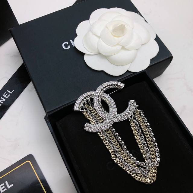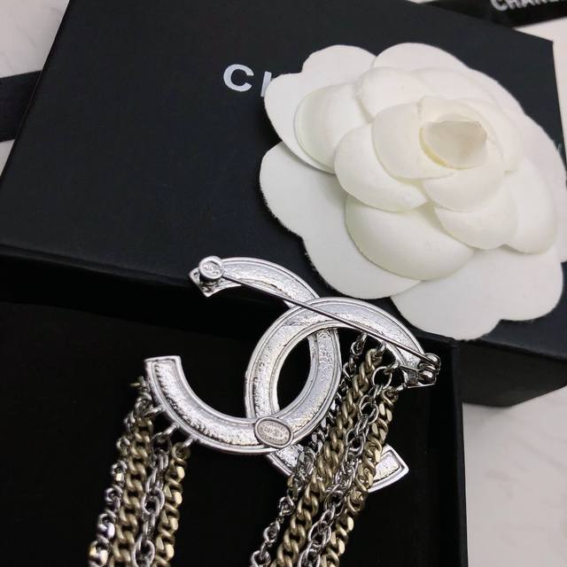 Hot Selling Chanel Tassel Brooch! Chanel double C letter tassel chain brooch, best-selling style, highest quality replica on the market! 1:1 replica of the boutique style, original boutique version, brass material! A classic Chanel must-have for every goddess, 1:1 craftsmanship, super fairy-like