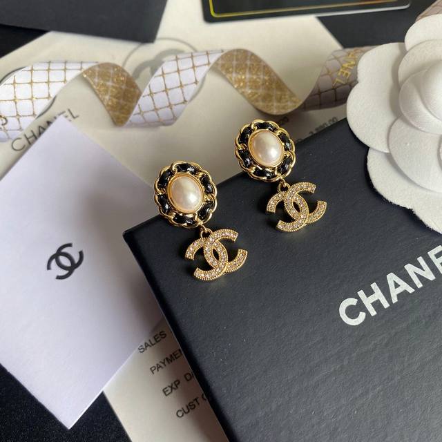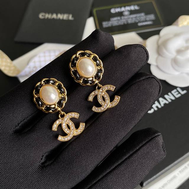 Hot Selling Goods! Ch Nel Chanel's latest pearl and leather stud earrings are a highly recommended style. This mid-length Chanel earring features a classic black design with white pearl and genuine leather accents. Each layer of the design is a classic, simple yet exuding a high-end feel. A must-have, absolutely versatile and trendy. The wearing effect is incredibly beautiful, elegant, and sophisticated. Made of 925 sterling silver, brass, and imported lambskin.