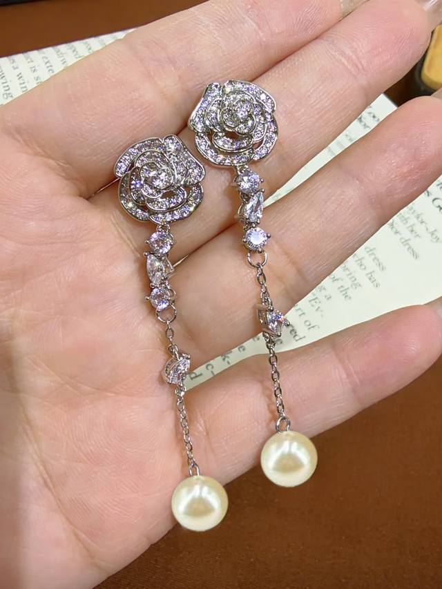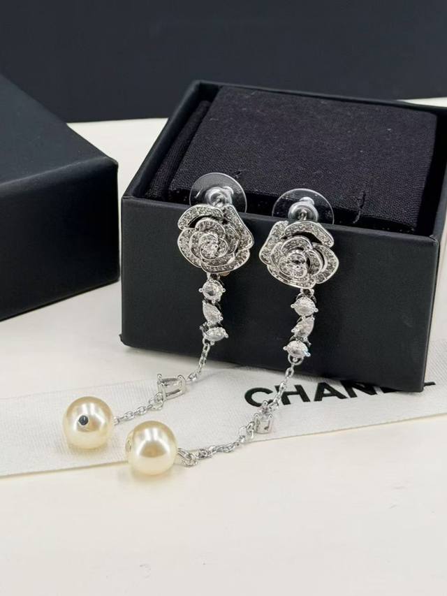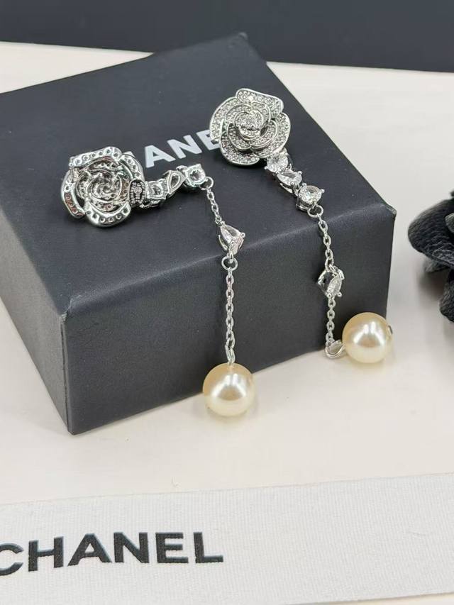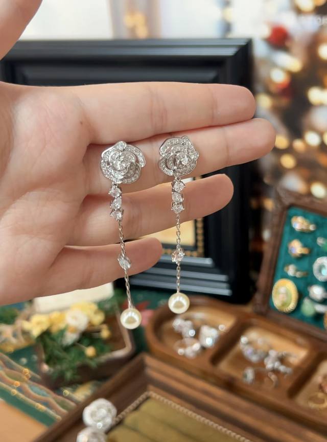 I absolutely love this Chanel design! The 3D camellia tassel pearl earrings are stunning. The layers of pearls create a beautiful and captivating floral effect. The original logo lettering is incredibly versatile, perfect for everyday wear, and exudes a simple yet elegant style. The design features a double C logo paired with flowers, crafted using enamel techniques. The workmanship is exquisite and meticulous, a truly ethereal and beautiful piece. The craftsmanship is impeccable, comparable to the original. Buying it is a steal!