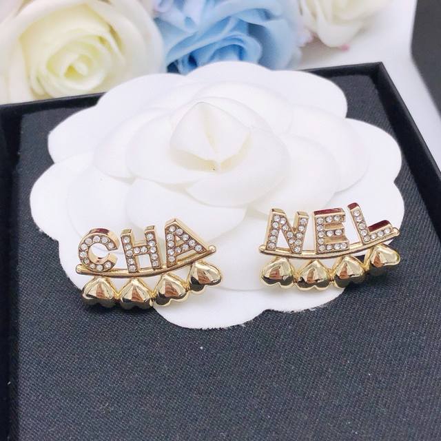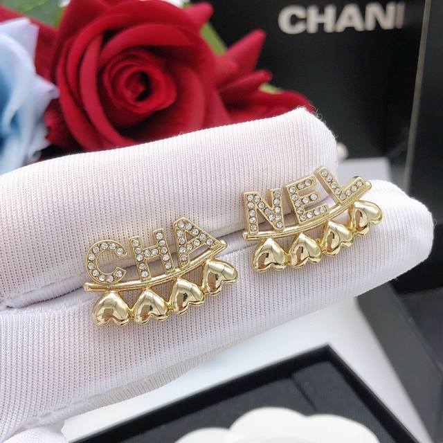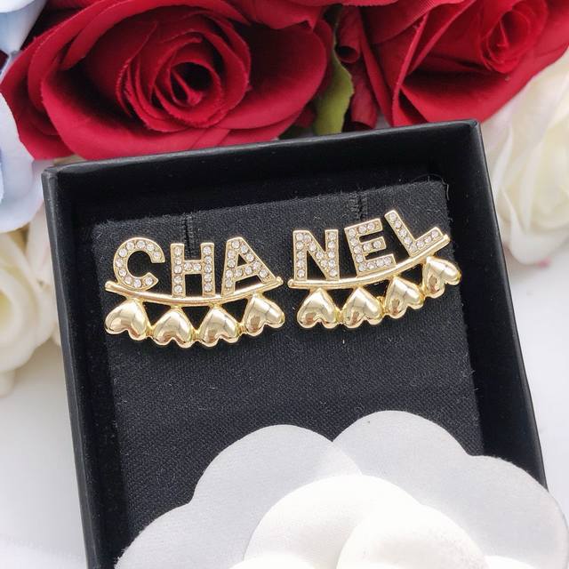 Item No. Xed0454 Letter Style Ddd Chanel 23p Early Spring New Arrival Ddd Letter Rhinestone Heart-Shaped Stud Earrings Ddd Logo Rhinestone Pendant Chain Hook Earrings Ddd Round Peach Heart Logo Glossy Series Ddd Casual Fashionable Versatile Item Ddd Must-Have for Sweet and Cool Girls Ddd