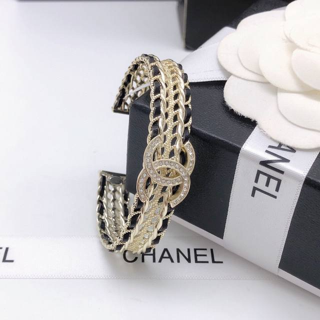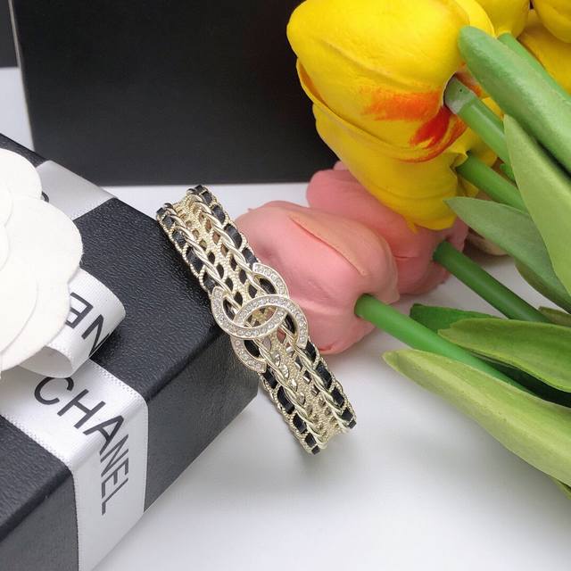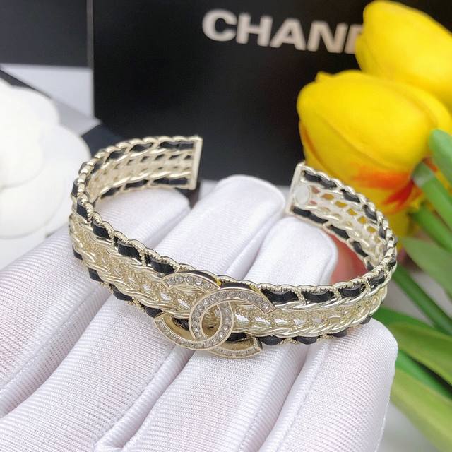 Item No. Xsz0011 White Bangle; Item No. Xsz0012 Black Bangle; Chanel 22Ss New Leather Circle Double C Bangle, Sweet and Elegant Style, Super Beautiful, Everyday Versatile, Selected Original Brass Material Bangle