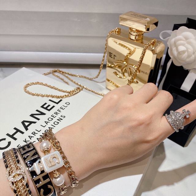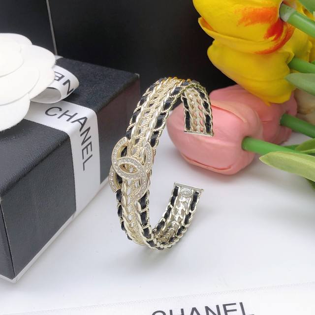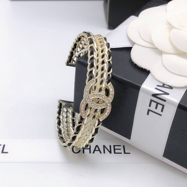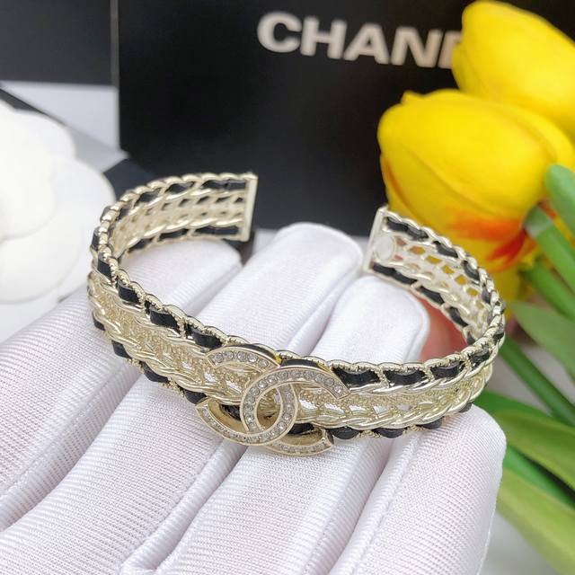 Item No. Xsz0011 White DDD Item No. Xsz0012 Black DDD Chanel 22Ss New Leather Circle Double C Bangle, Sweet and Elegant Style, Super Beautiful, Everyday Versatile, Selected Original, Brass Material DDD