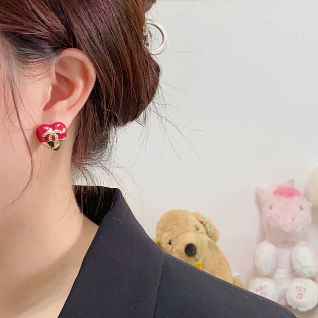 New Arrival High-End Chanel Double C Minimalist New Year Red Heart Diamond Stud Earrings. These earrings are absolutely gorgeous! The design looks simple, but the effect when worn is stunning. Even my small earlobes look great on them. They exude elegance and sophistication, suitable for all occasions.
