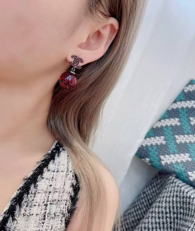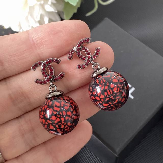 New Chanel 25 Blue and Red Ceramic Teardrop Diamond Letter Earrings - Love at First Sight! Original Clear Imprint. Chanel 25 New Jewelry - Stunning! Classic elements given a fresh twist. Sparkling diamonds paired with metal create a super stylish look. Each piece is exquisitely beautiful, versatile and eye-catching. Who doesn't love the Chinese style blue and white porcelain earrings? Full diamond double C design with a blue and white porcelain sphere underneath