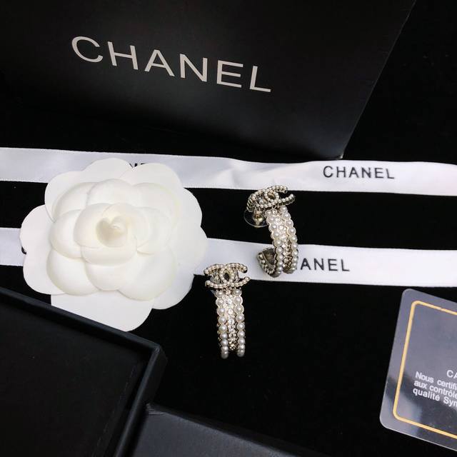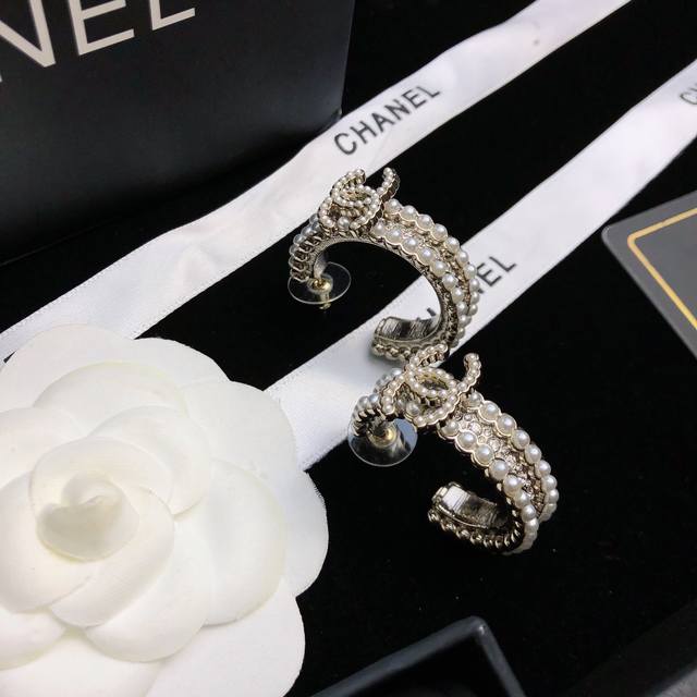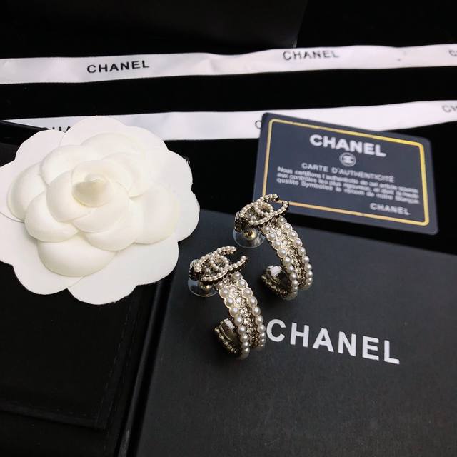 New Chanel boutique style hoop earrings, elegant and luxurious, selected from the original boutique, made of brass with S925 sterling silver needles, super beautiful and ethereal earrings. (