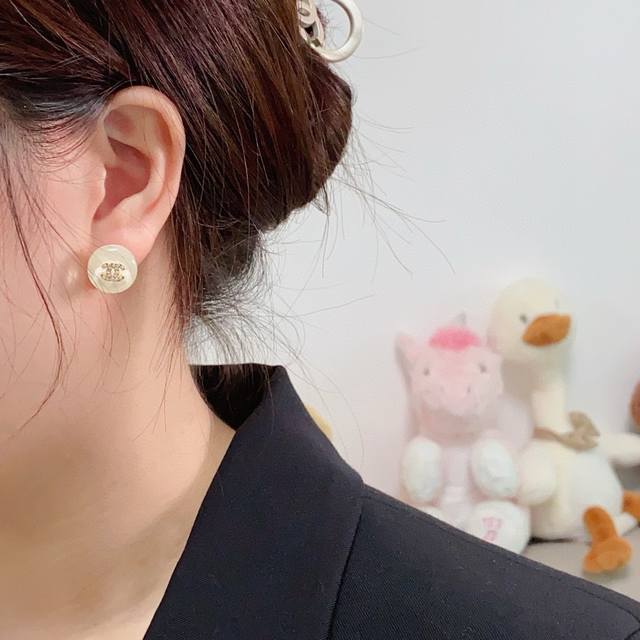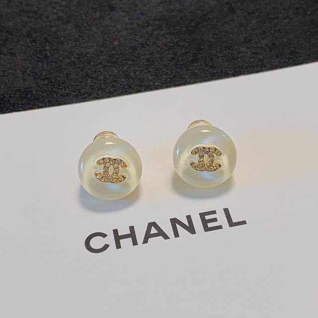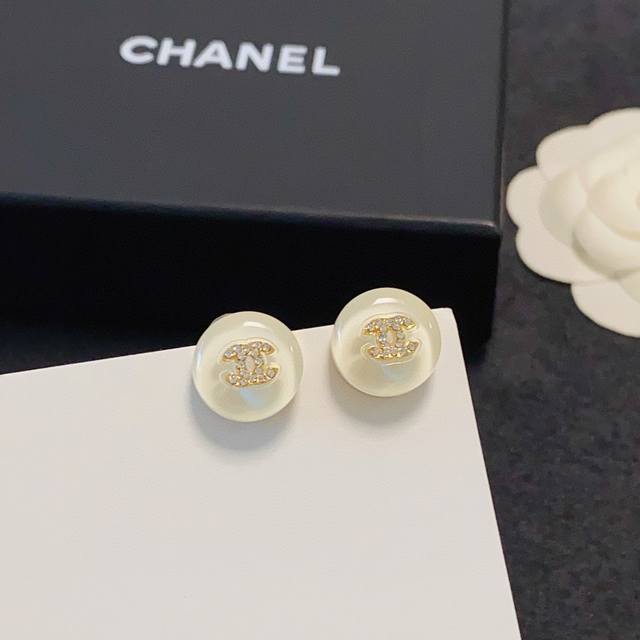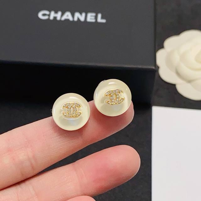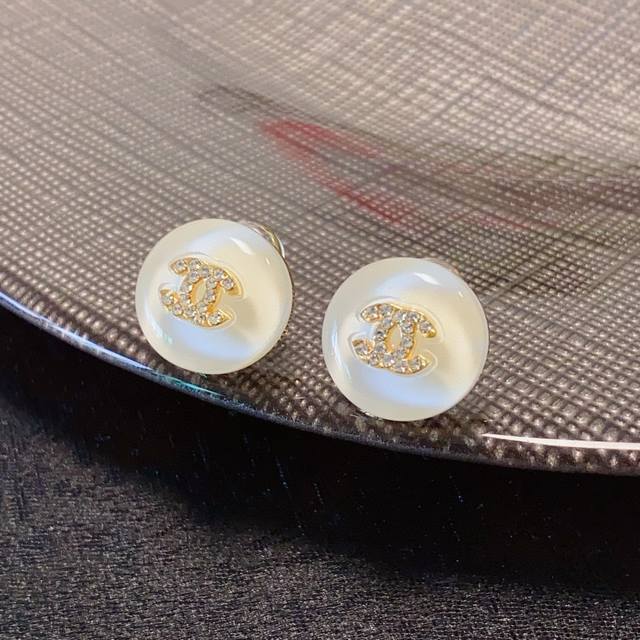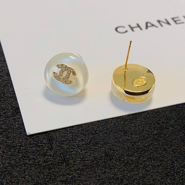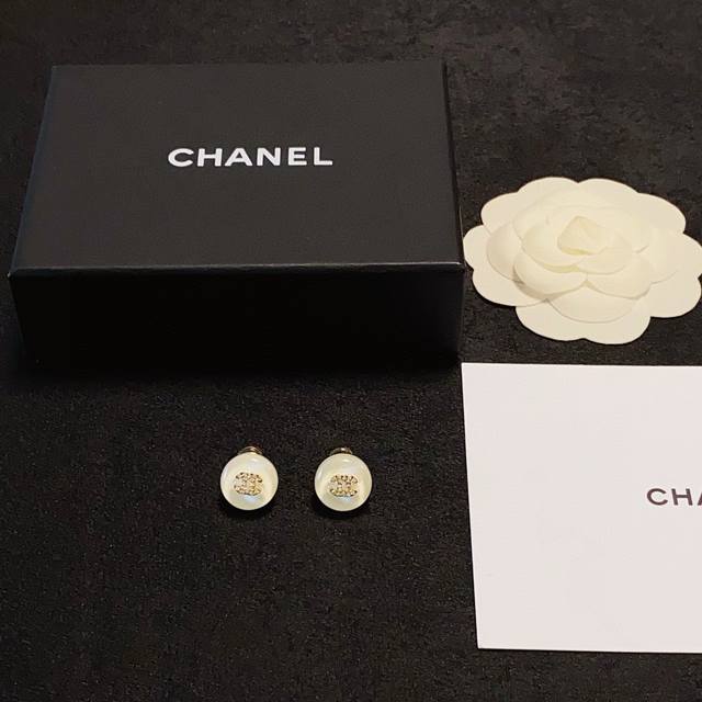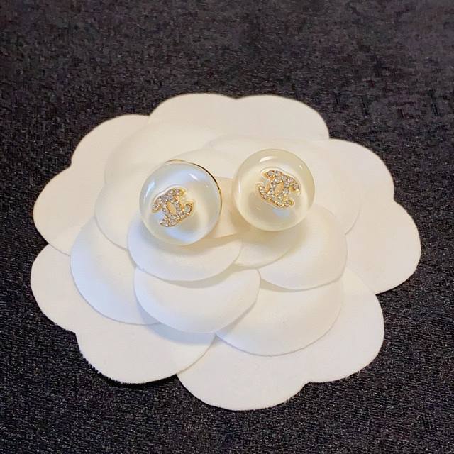 New Chanel Double C Miniature White Diamond Stud Earrings. These earrings are absolutely gorgeous! The design looks simple, but the effect when worn is stunning. Even my small earlobes look great on them. Made of brass, they look incredibly elegant and sophisticated on the ears.