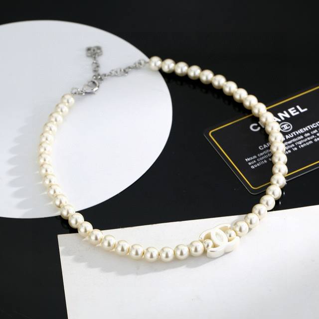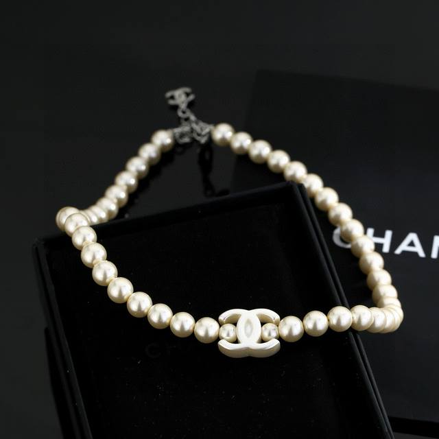 New Chanel Pearl Necklace/Collarbone Chain DDD Extremely exquisite, super beautiful, and dazzling with any outfit DDD The oval logo on the back is clear, and the material is brass plated, consistent with batch Z DDD Every detail is meticulously crafted, distinguishing it from common market goods! Necklace DDD