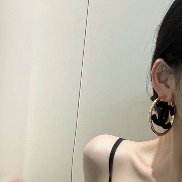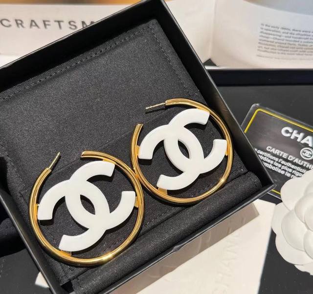 Oversized new Chanel Chanel fine product large letter hoop earrings, white letter hoop Bracelet Jewelry new thick earrings, high-end custom exquisite small items must-have year-round wear, details enhance clothing quality, enhance the texture of elegance, stylish temperament, exquisite collector's item for daily commuting, exquisite circle 5.6cm