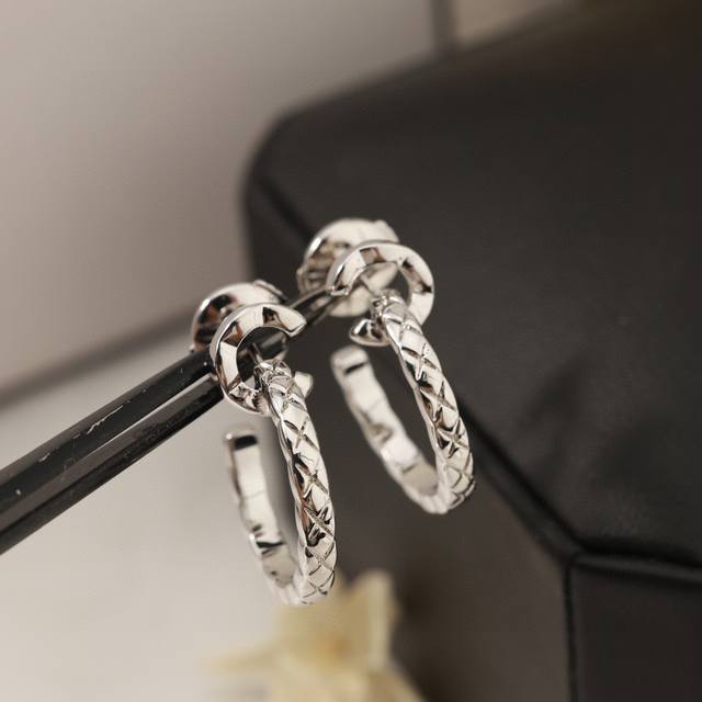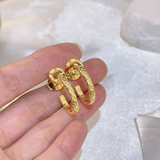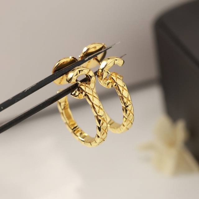 Seiko version Coco Crush series earrings with diamond pattern, Beige beige 18K gold, double C Chanel diamond pattern classic earrings, sub-gold material electroplated with thick gold for long-lasting color retention, glossy version Chanel earrings Coco earrings